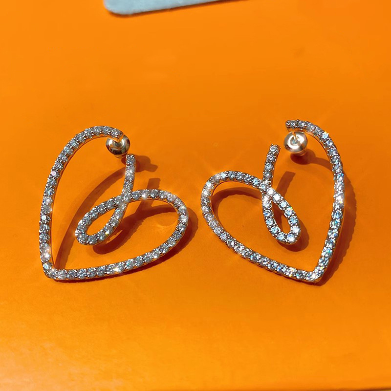 Clearance European and American high-end diamond heart earrings personality metal earrings cold style earrings ers64