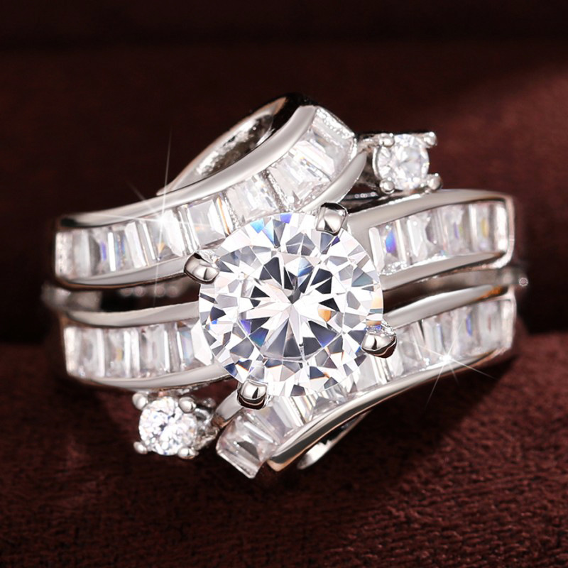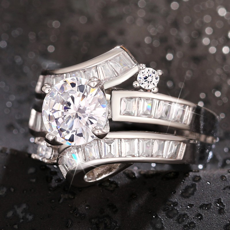 Micro-inlaid celebrity style classic all-match popular ring six-claw zircon wedding ring European and American style light luxury ring