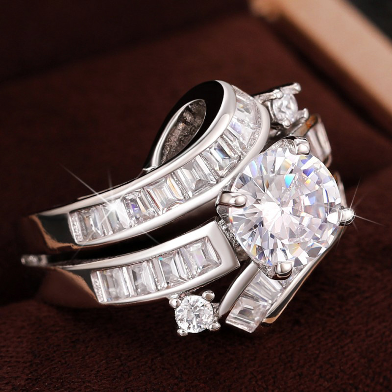 New zircon ring hollow cross four claws fashion design proposal wedding ring birthday gift ring