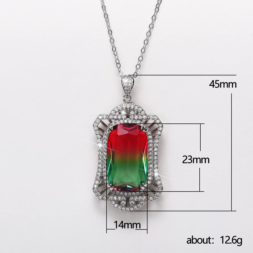 Luxury colored tourmaline pendant hollow palace style gradient color zircon necklace Mother's Day gift