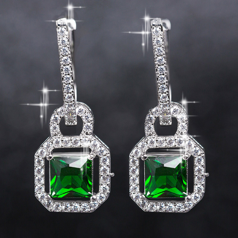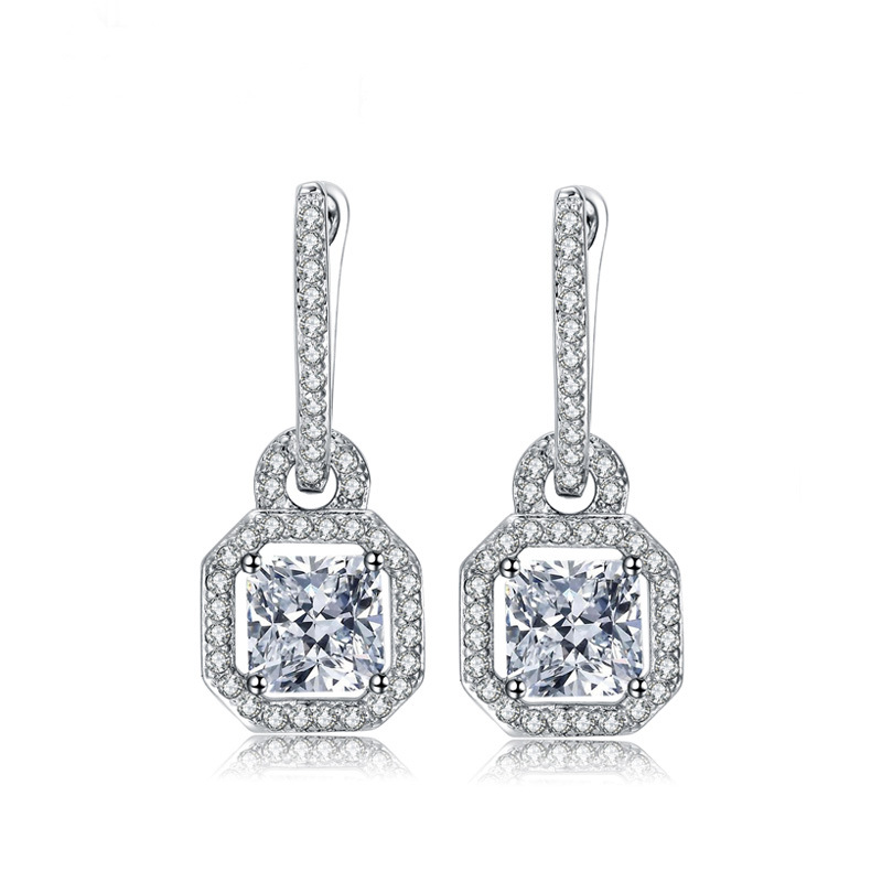 Luxury European and American style fashion women's earrings creative bags / lock-shaped square diamond zircon accessories earrings