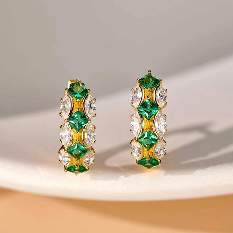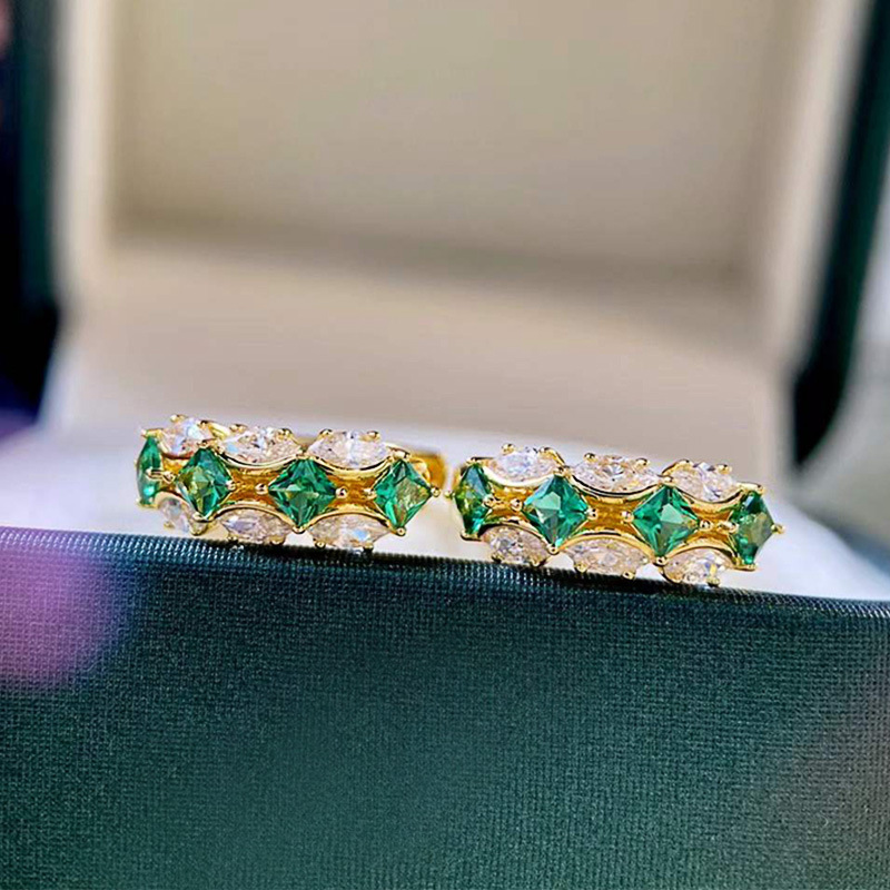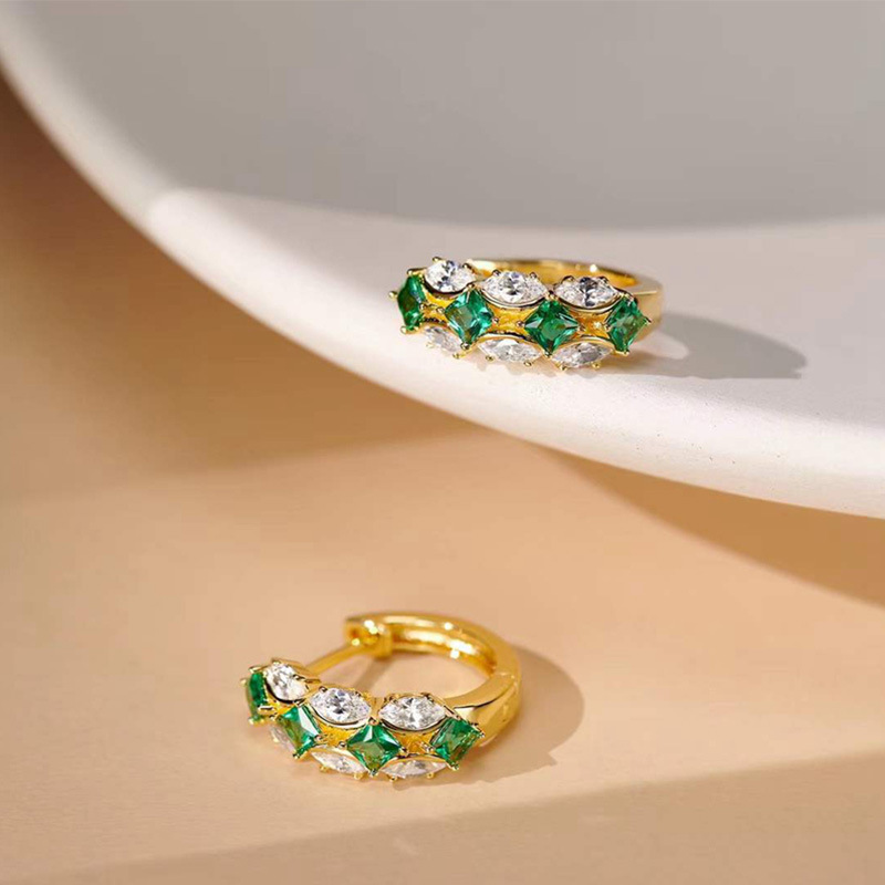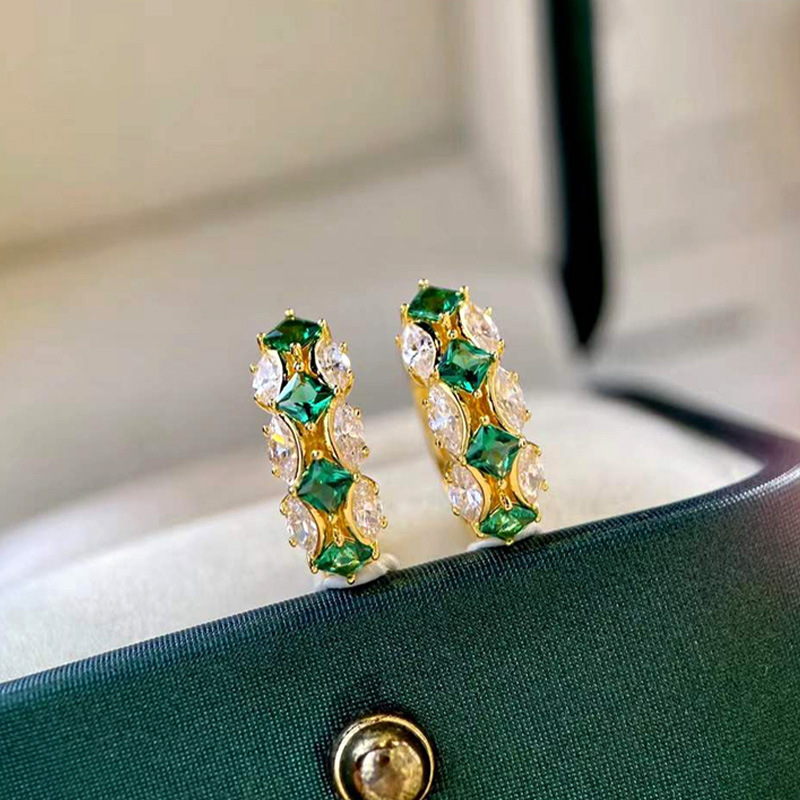 Luxury jewelry embellished earrings contrast color diamond horse eye women's earrings French texture geometric earrings