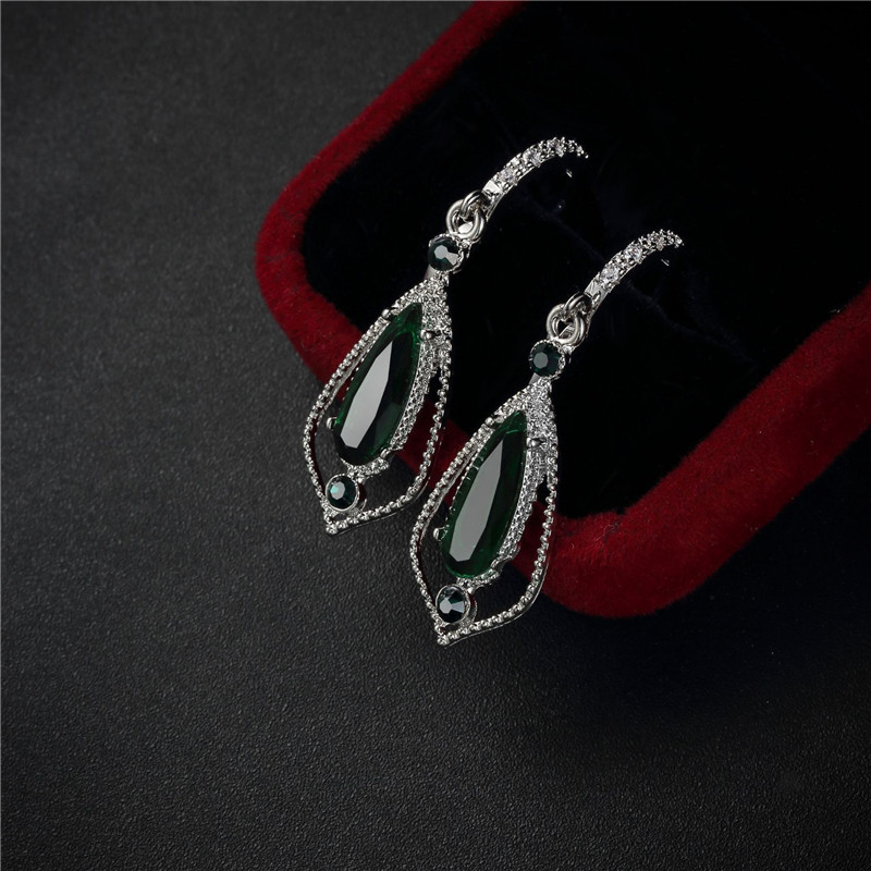 Luxury palace style emerald diamond zircon earrings European and American creative hollow water drop exaggerated earrings for women