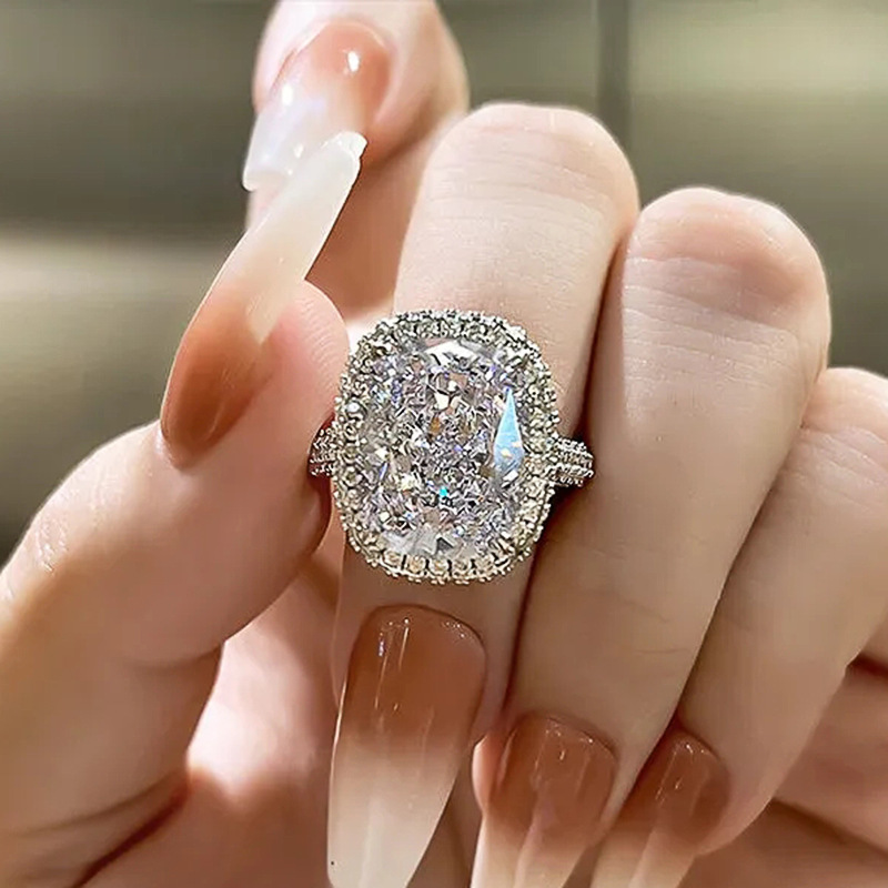 Micro-inlaid celebrity style classic all-match popular ring six-claw zircon wedding ring European and American style light luxury ring