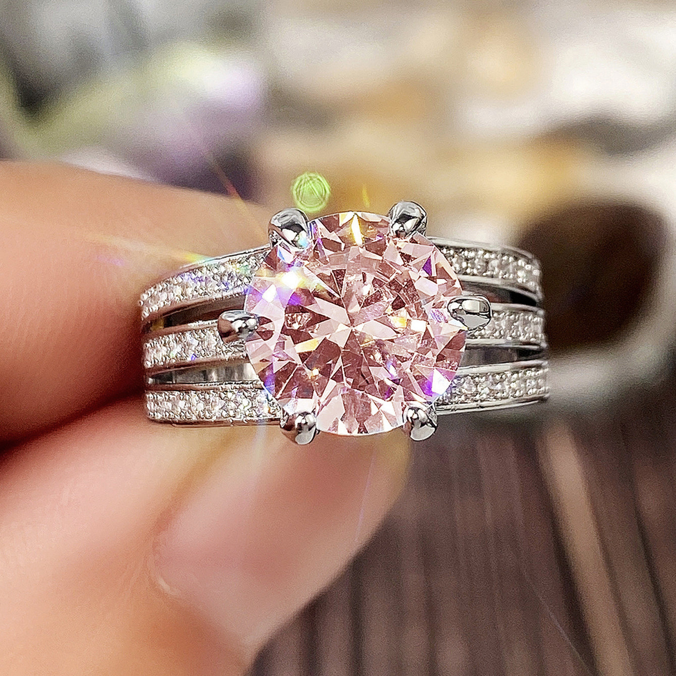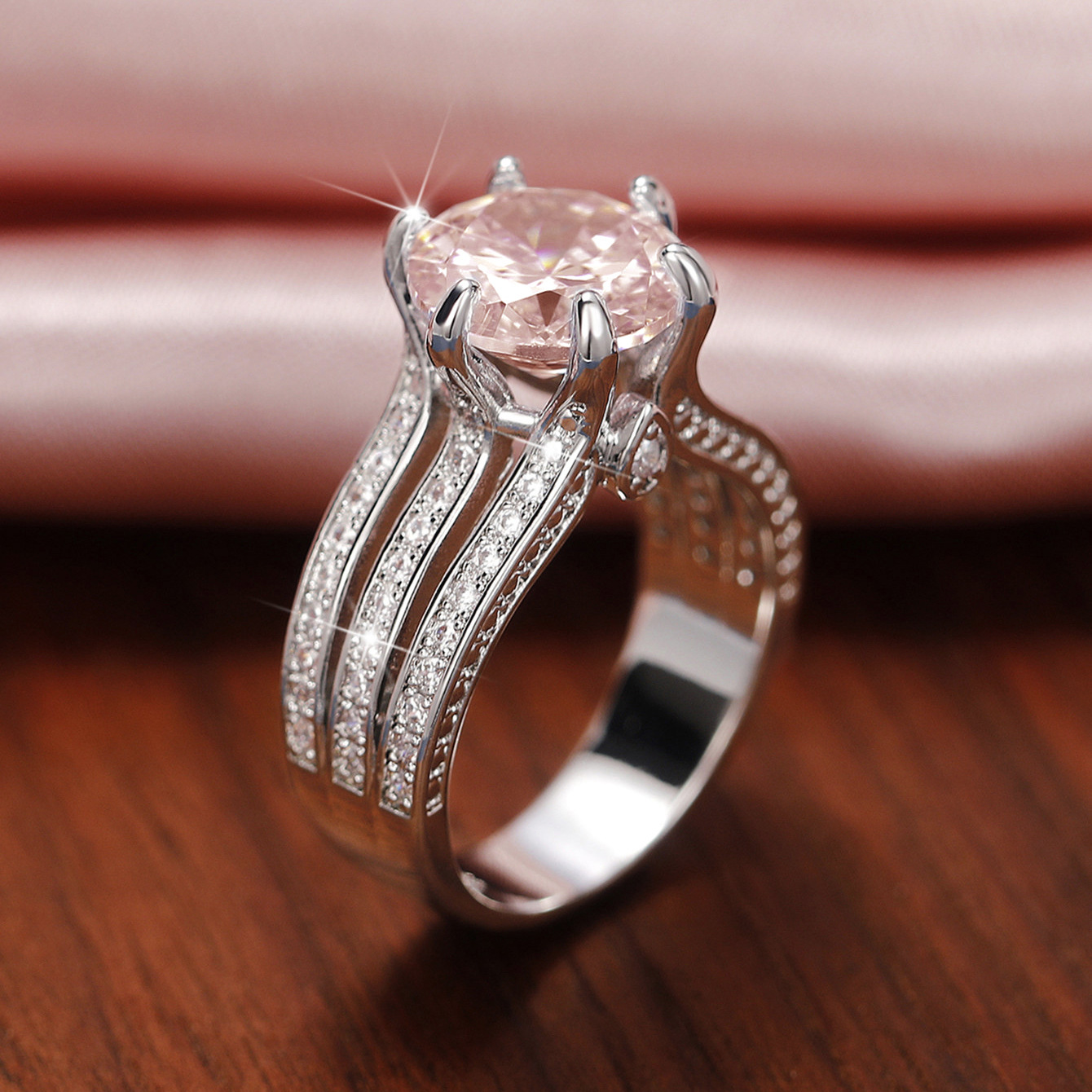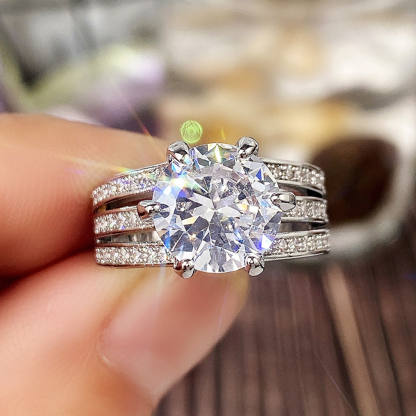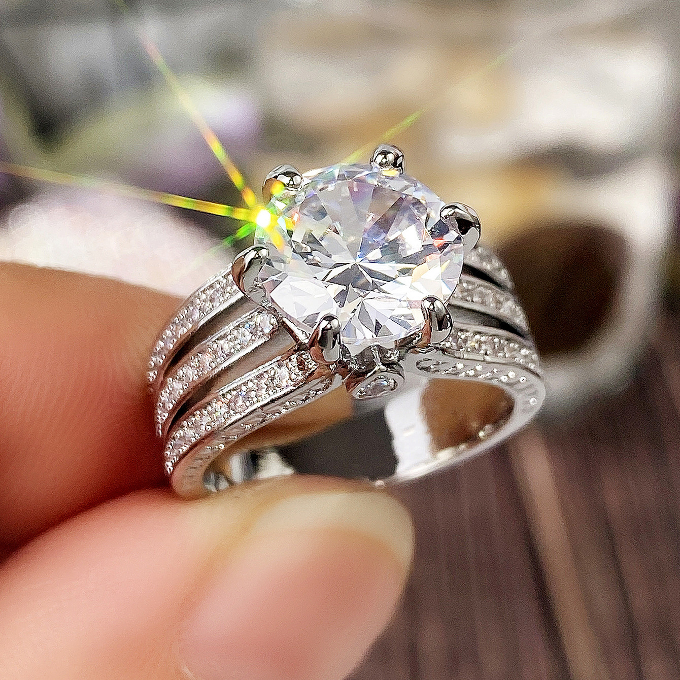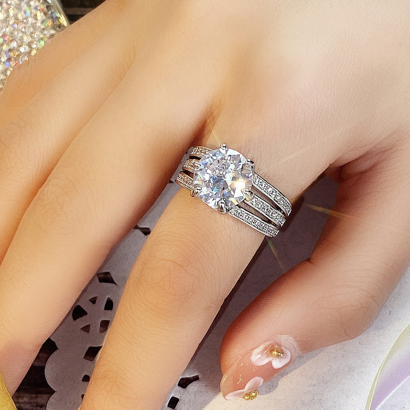 Micro-inlaid celebrity style classic all-match popular ring six-claw zircon wedding ring European and American style light luxury ring