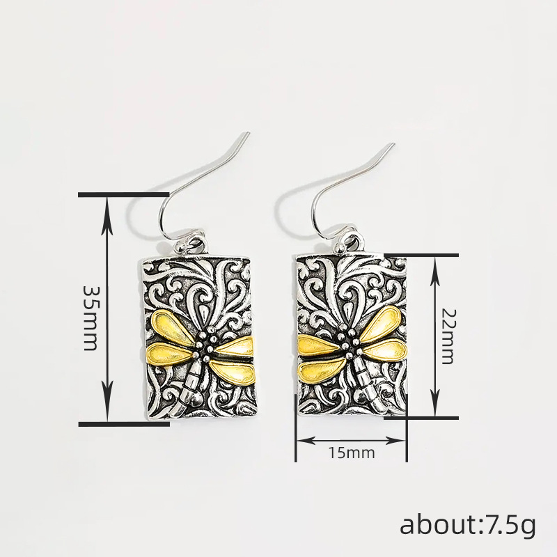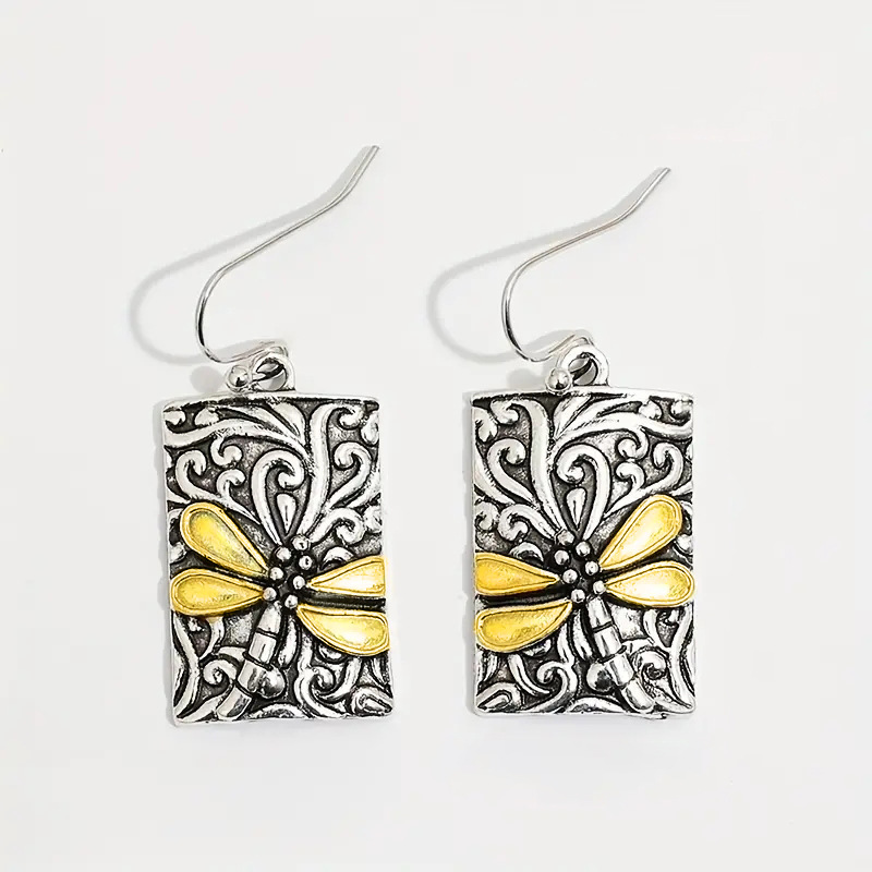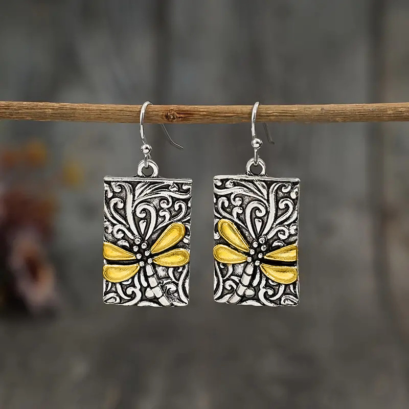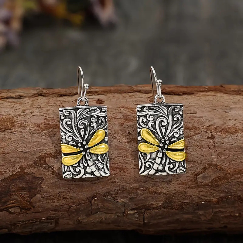 Maillard medieval style earrings for women, dragonfly two-color niche earrings, patterned texture, forest earrings