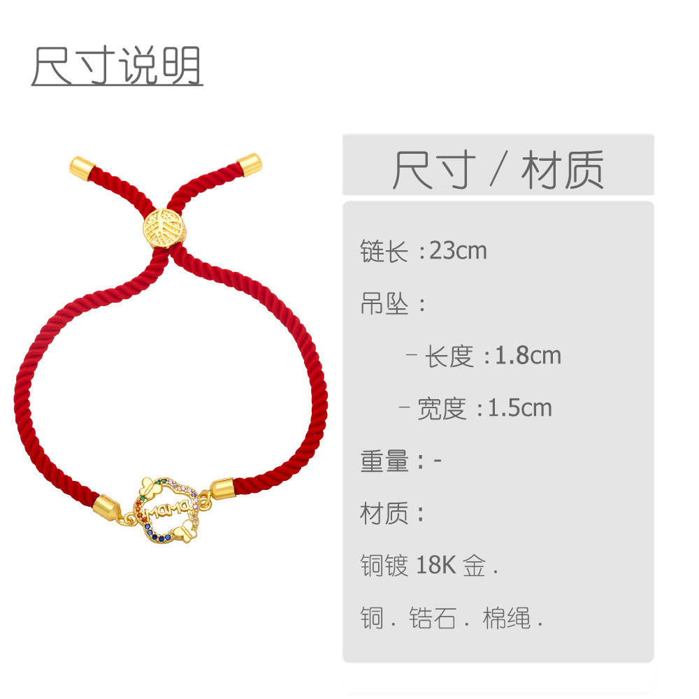MAMA LOVE red string bracelet with colored diamonds and heart-shaped flowers for Mother's Day