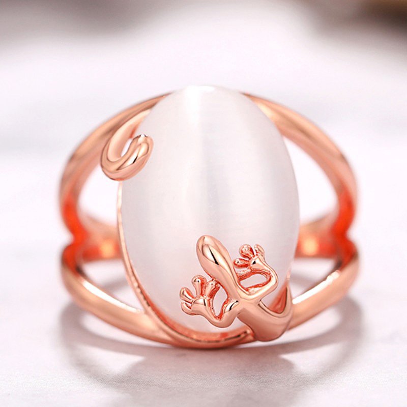 Manufacturer wholesale imitation Hetian jade ring cute mini lizard moonstone ring atmospheric exaggerated ring