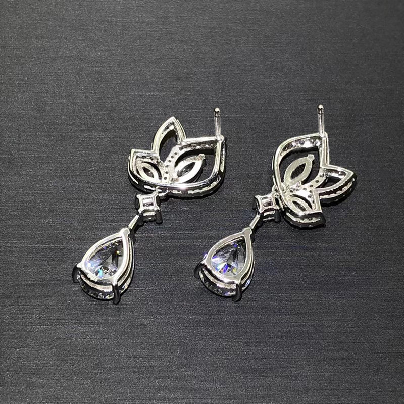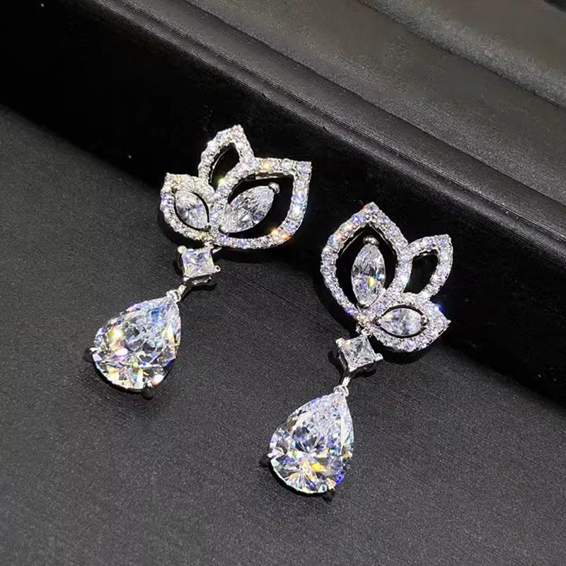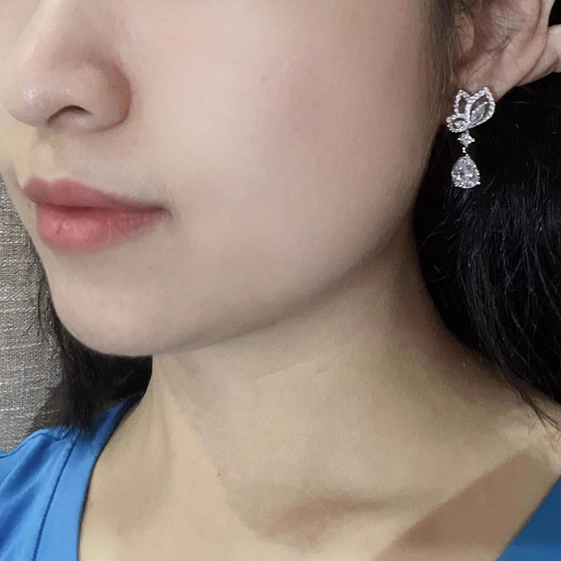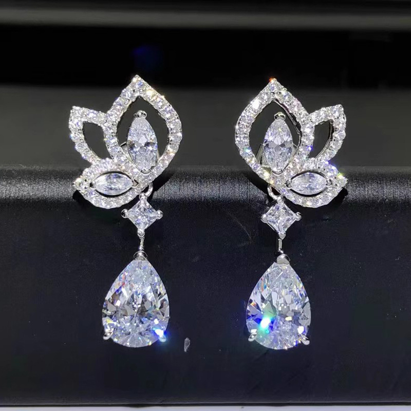 Manufacturer's drop-shaped lotus earrings with geometric zircon design, light luxury jewelry, fashionable and hot-selling earrings