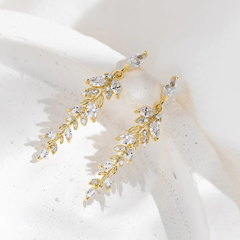 Manufacturer's hot selling tassel wheat ear earrings inlaid with zircon exquisite earrings elegant temperament evening dress accessories