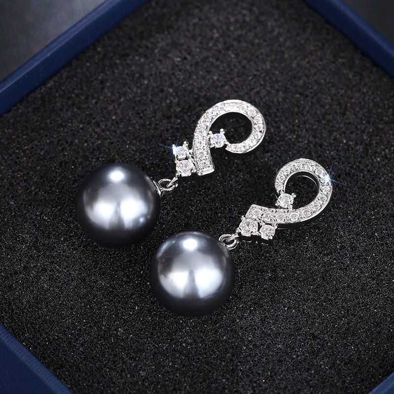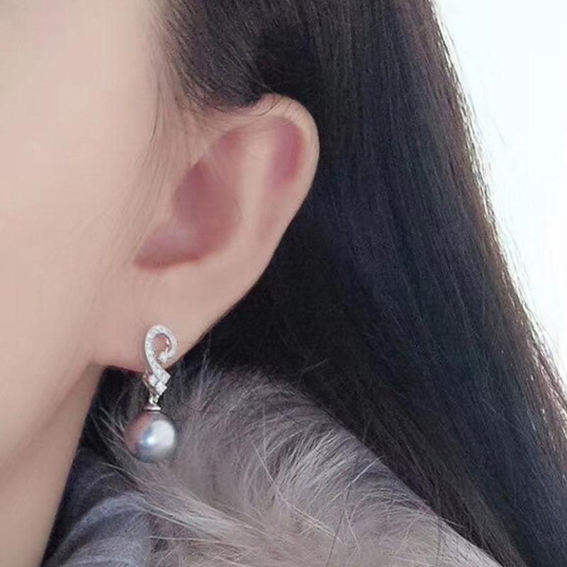 Manufacturer's new symmetrical earrings for women, imitation pearls, light luxury dark black jewelry, high-end niche factory direct sales