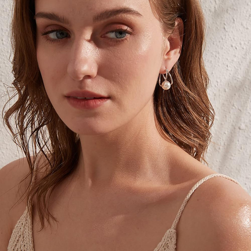 European and American retro high-end geometric U-shaped earrings earrings simple temperament pearl earrings earrings female erw26