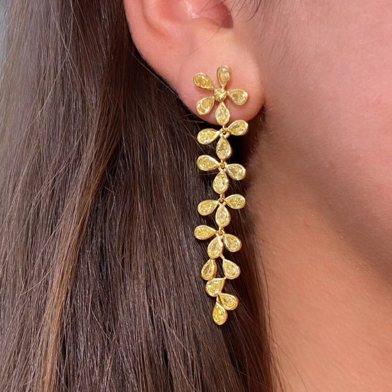 Manufacturers wholesale exquisite creative earrings for women long water drop flower accessories evening dress light luxury style jewelry