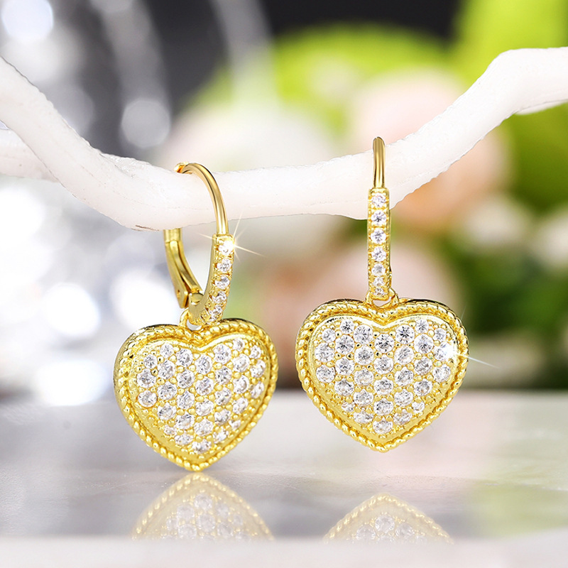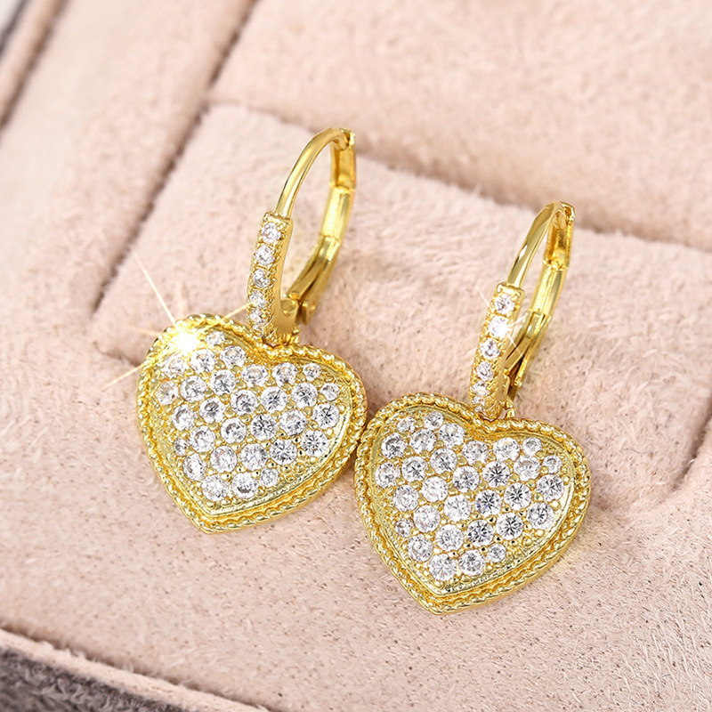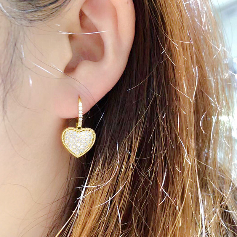 Manufacturers wholesale heart earrings for women micro-inlaid zircon shiny earrings fashionable light luxury princess hot selling style