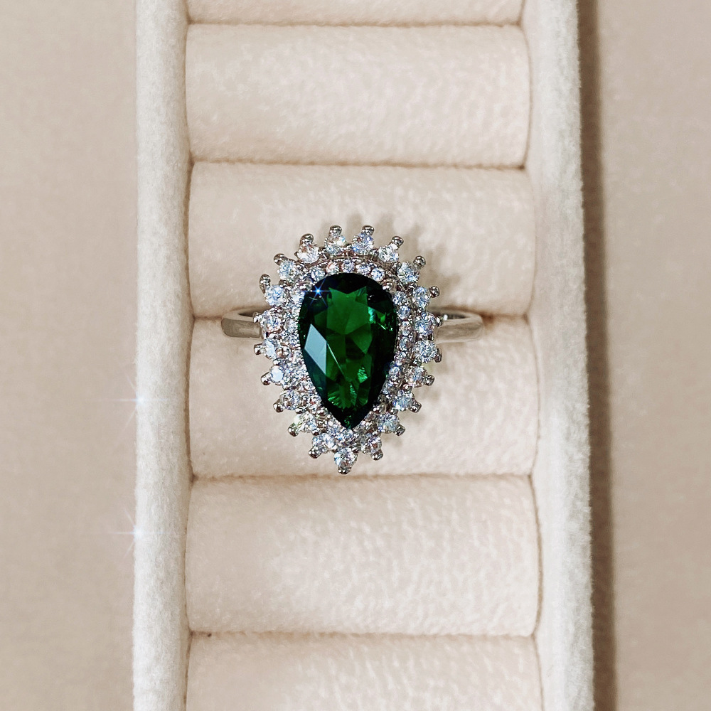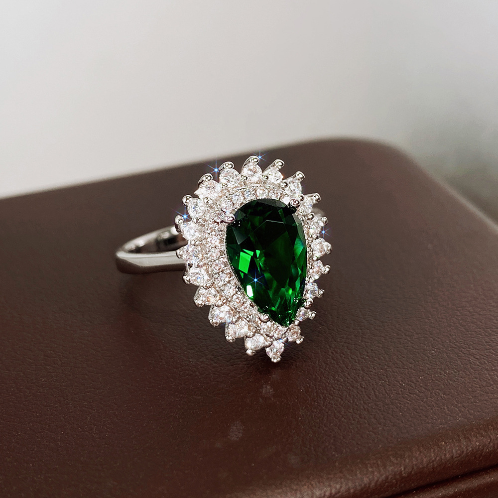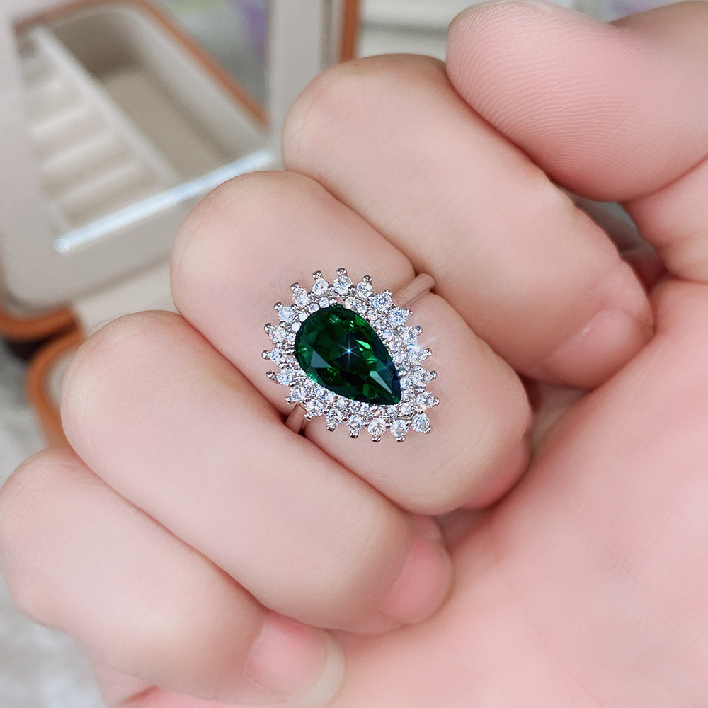 Manufacturers wholesale high-end teardrop-shaped ring for women, zircon design sense, ladies' ring, banquet dress accessories