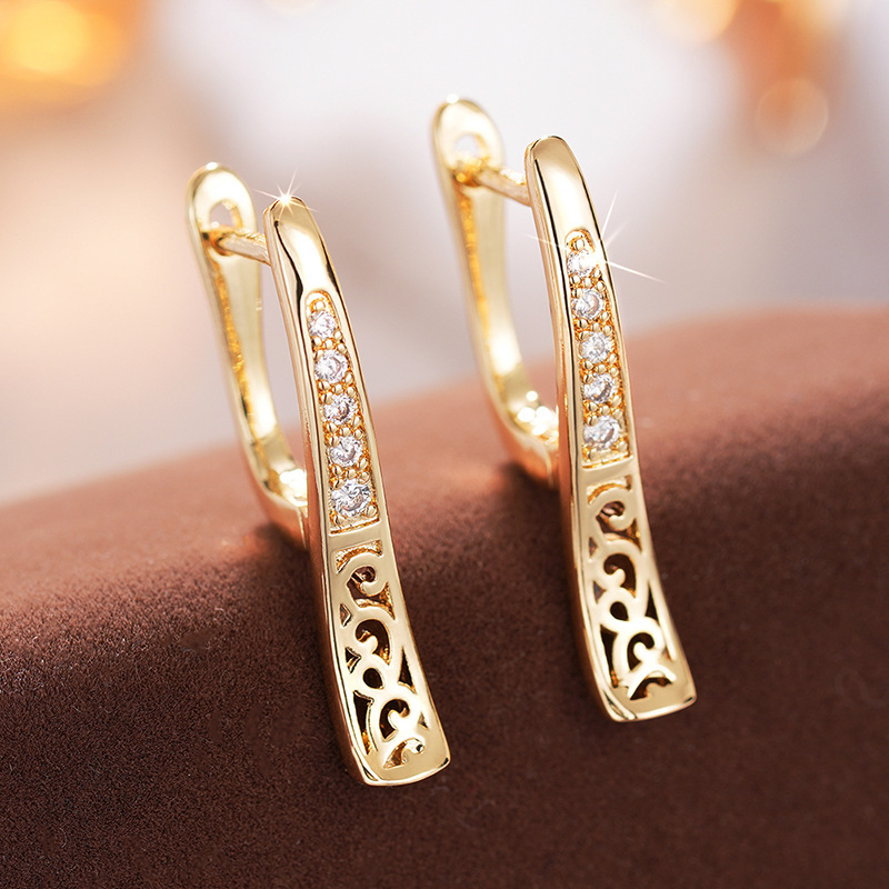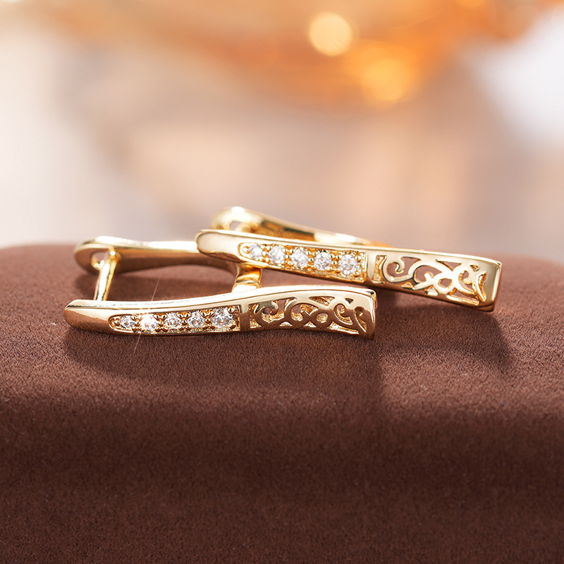 European and American personality retro U-shaped zircon earrings earrings light luxury high-end simple temperament earrings earrings female ert86