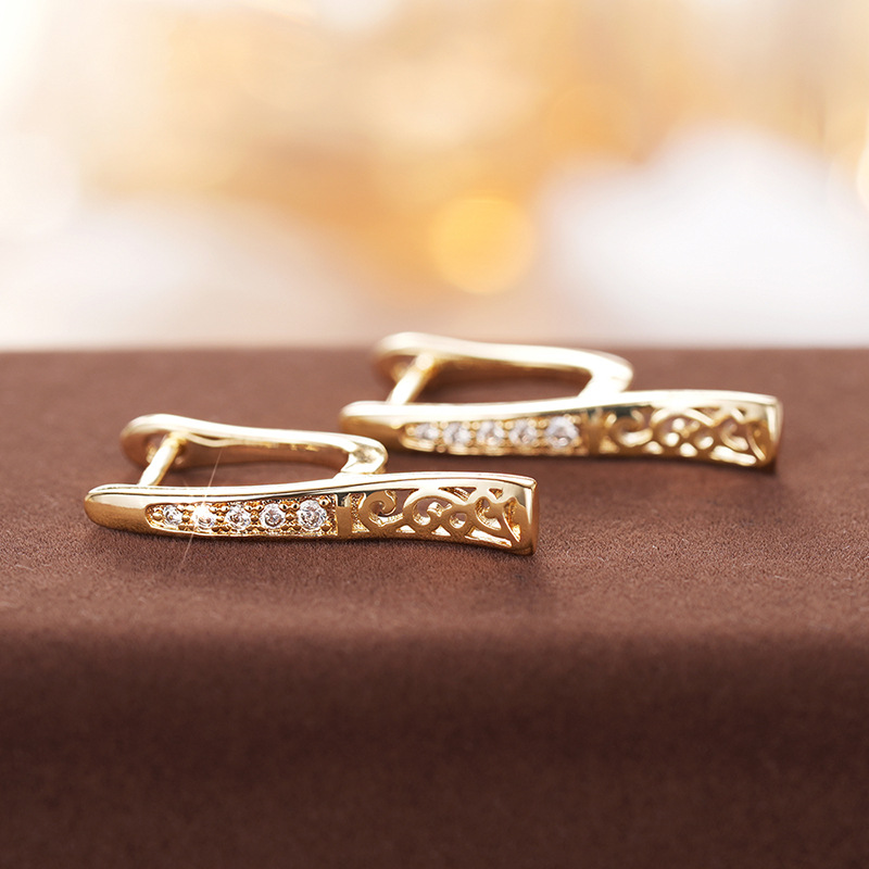 Manufacturers wholesale hot-selling earrings for women, design sense hollow exquisite jewelry diamond-studded French elegant style earrings