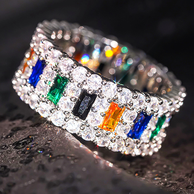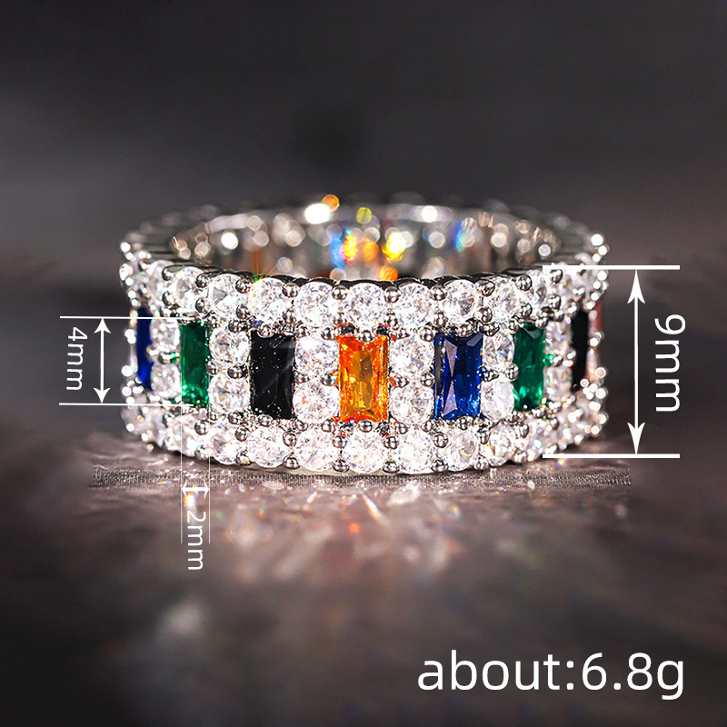 Manufacturers wholesale new rings for women, geometric square colored zircon jewelry, niche internet celebrity style