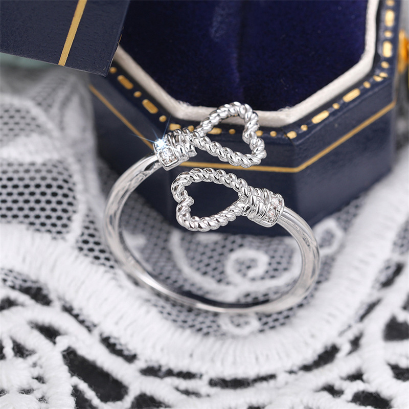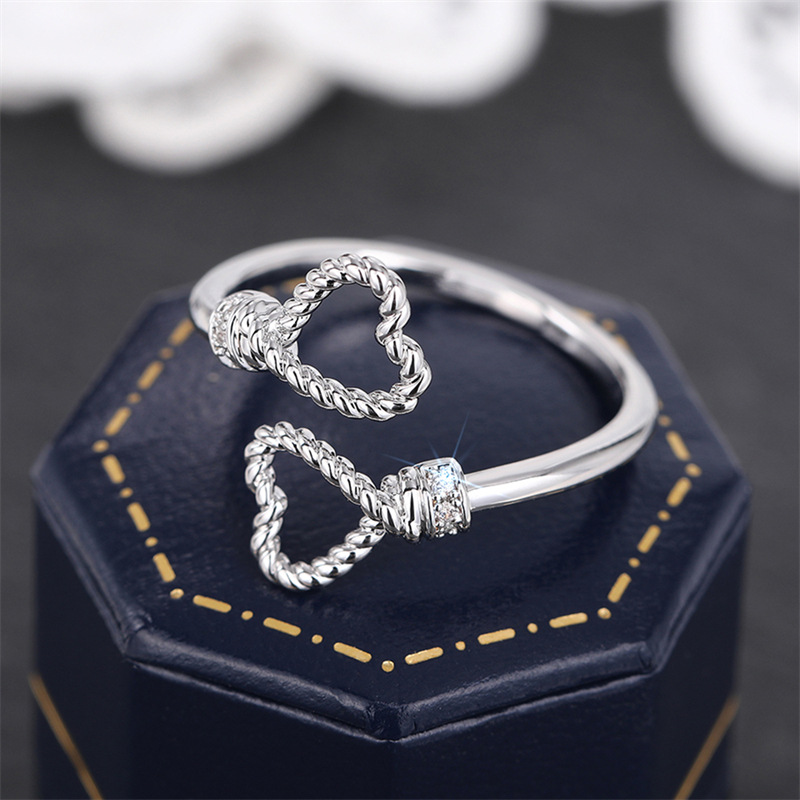 Manufacturers wholesale simple love ring for women with adjustable opening hemp rope ring peach heart-shaped jewelry