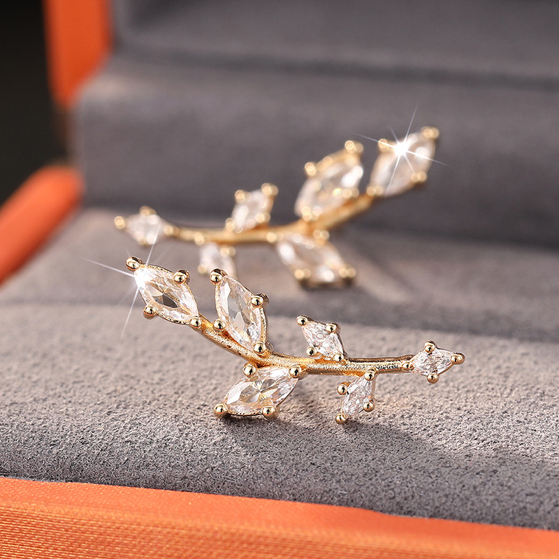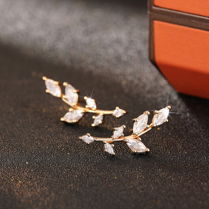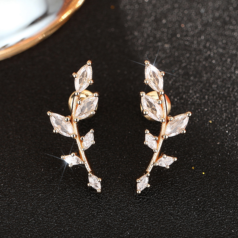 Manufacturers wholesale wheat ear earrings for women, personalized daily matching accessories inlaid with zircon leaf jewelry