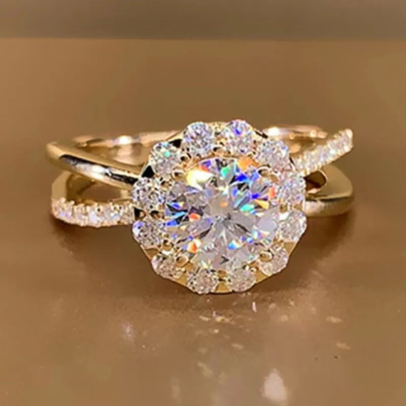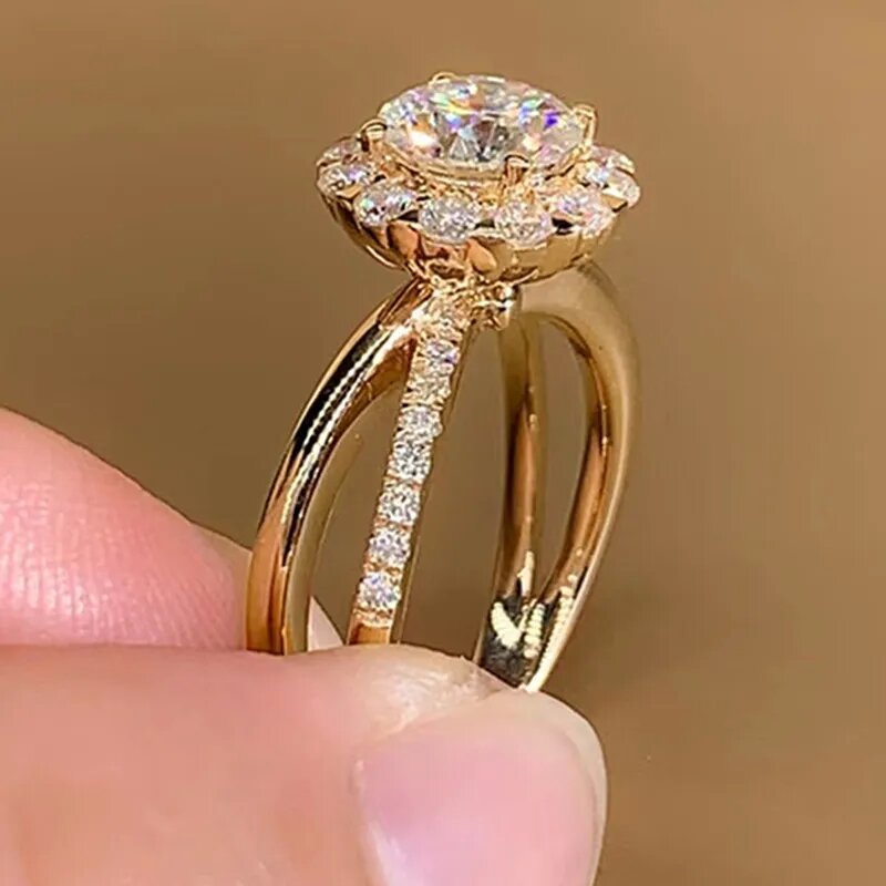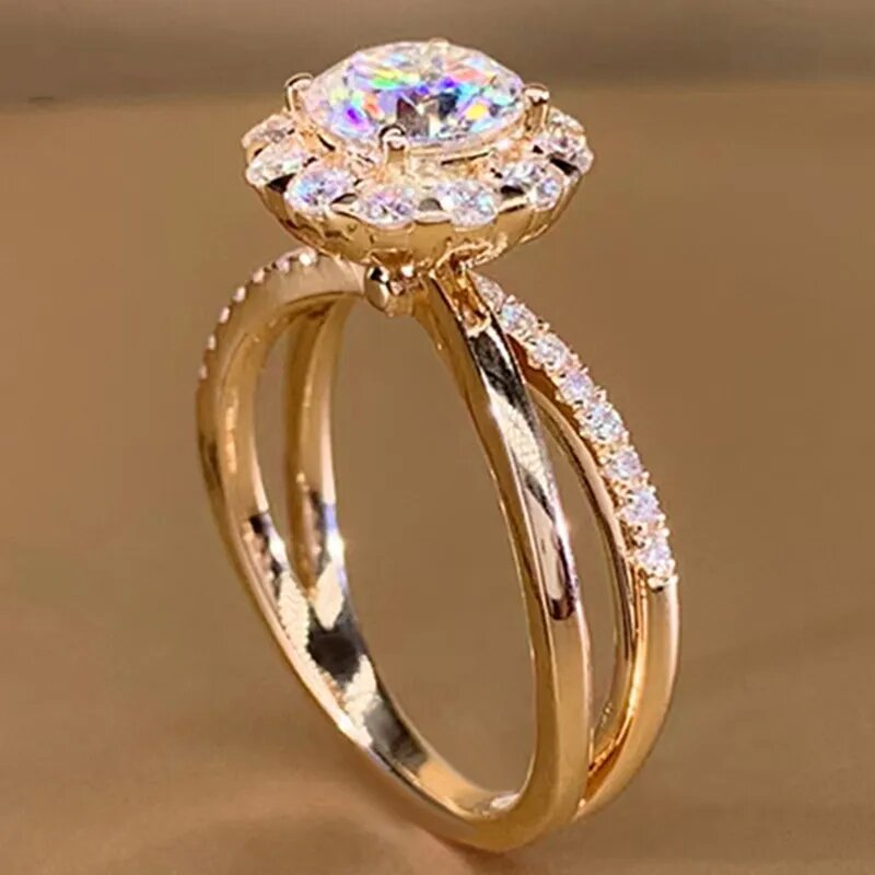 Marriage proposal imitation moissanite ring sunflower zircon decoration ring niche design cross ring