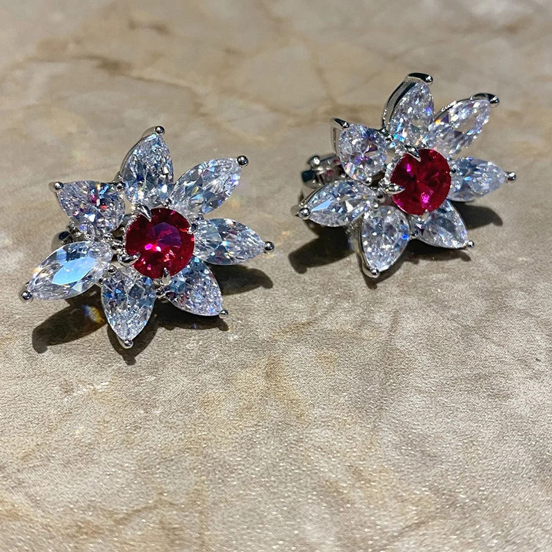 Medieval European and American light luxury earrings water drop horse eye shaped petal earrings floral light luxury flower earrings