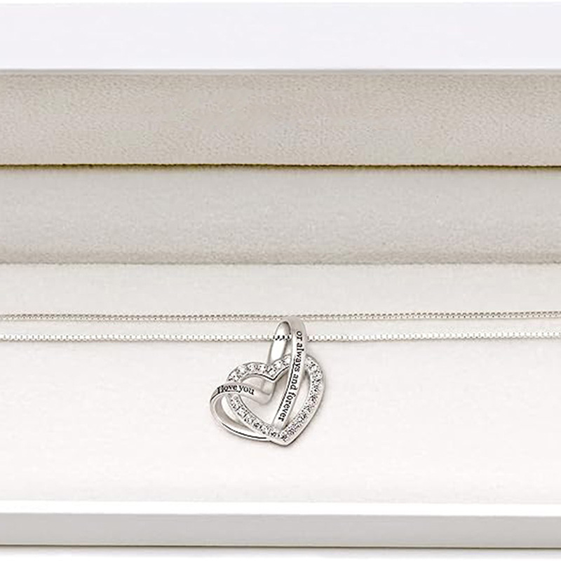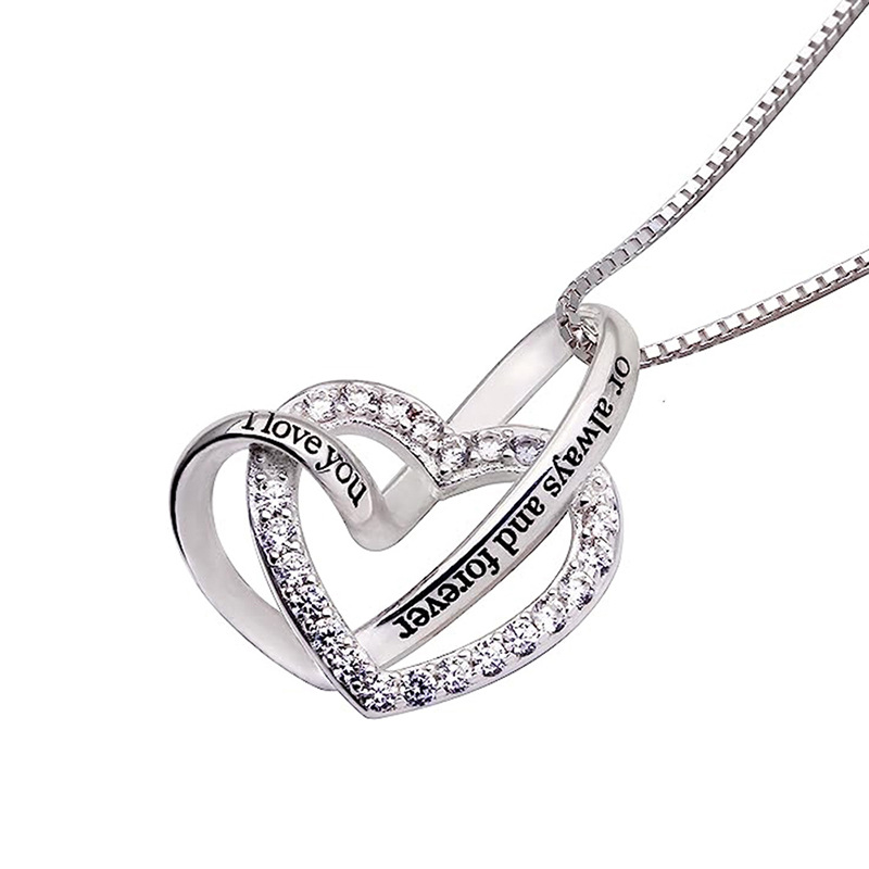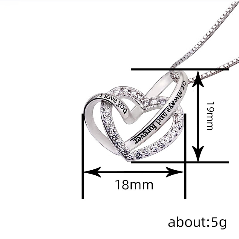 Metal electroplating double heart design necklace with zircon engraving exquisite jewelry elegant temperament hot sale