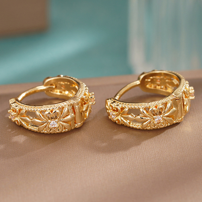 Metal electroplating heart earrings for women hollow floral earrings niche Middle Eastern exotic style super hot style