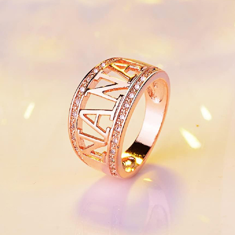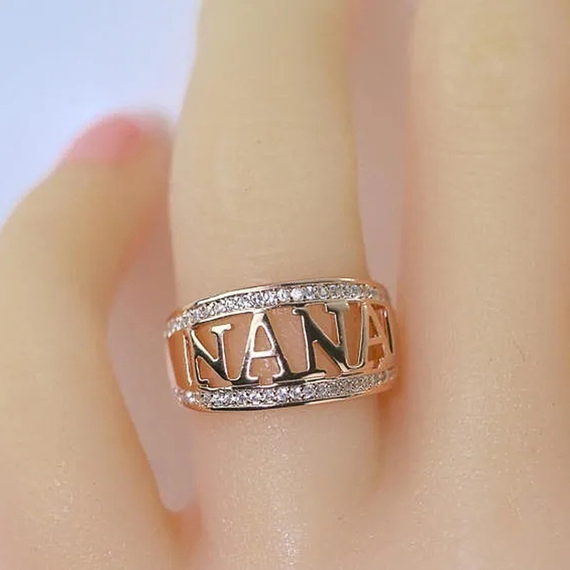 Metal electroplating hollow letter NANA women's fashion personality popular jewelry temperament elegant ring