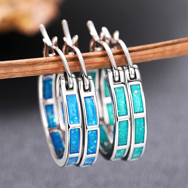 Metal electroplating simple earrings for women imitating moonstone geometric design jewelry fashionable daily matching accessories