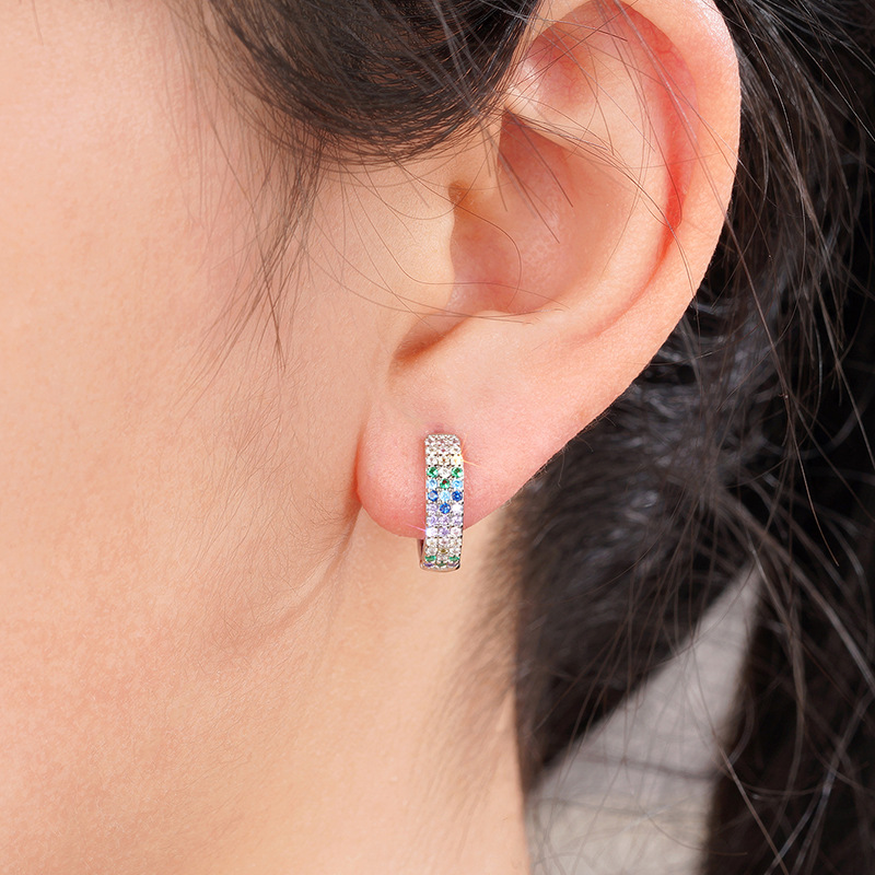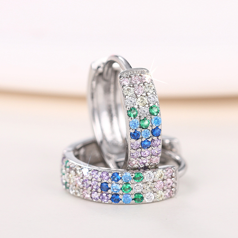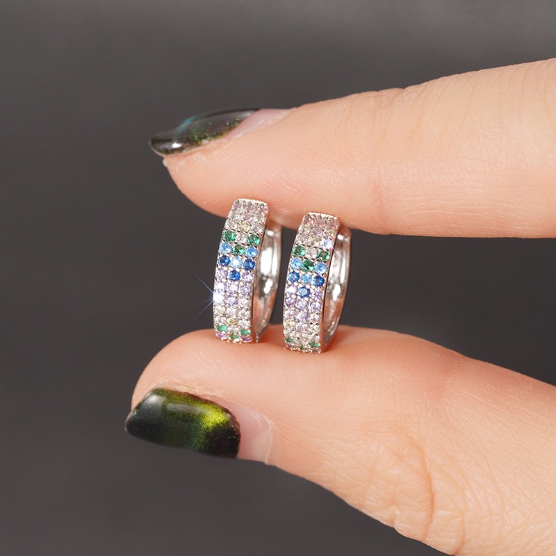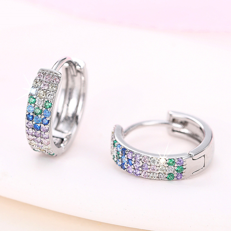 Metal micro-inlaid colored zircon earrings for women, daily matching accessories, fashionable and sweet, hot selling items