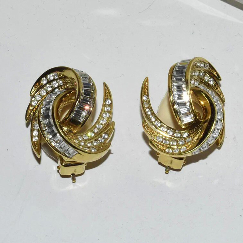 Metal micro-inlaid design earrings for women, personalized niche zircon jewelry, vortex eye-catching light luxury style jewelry