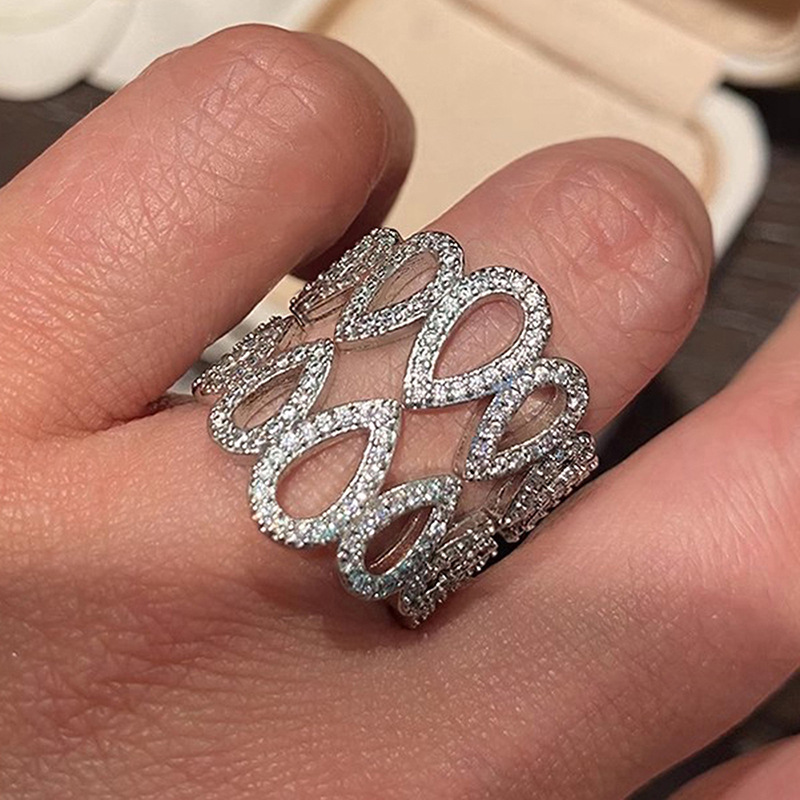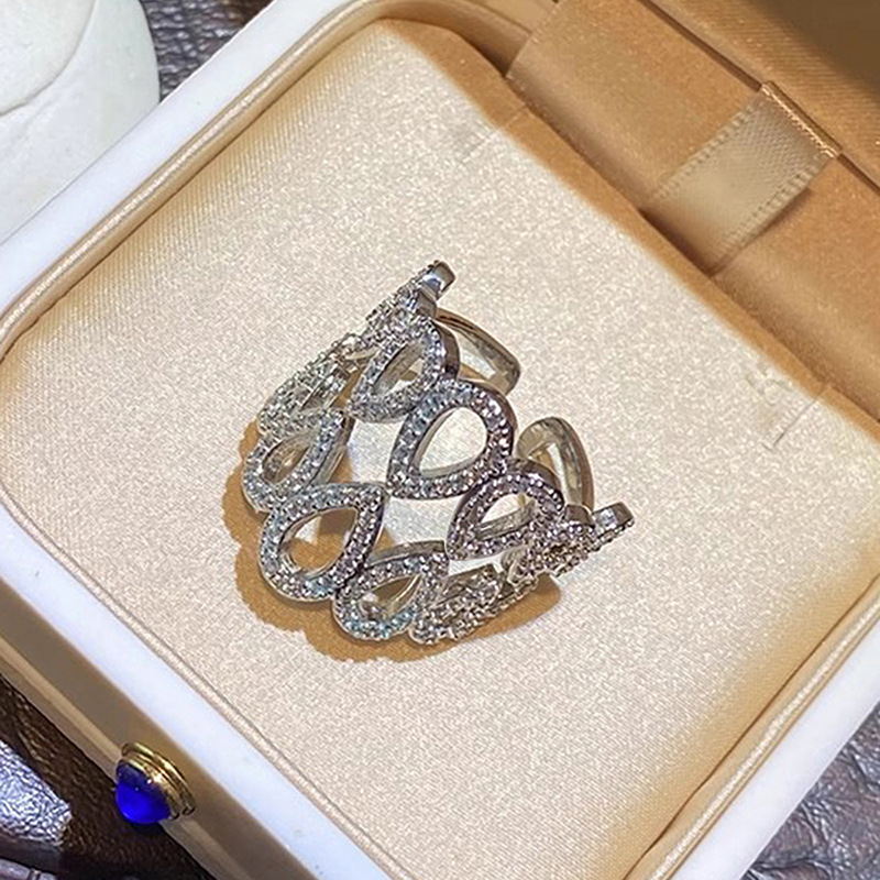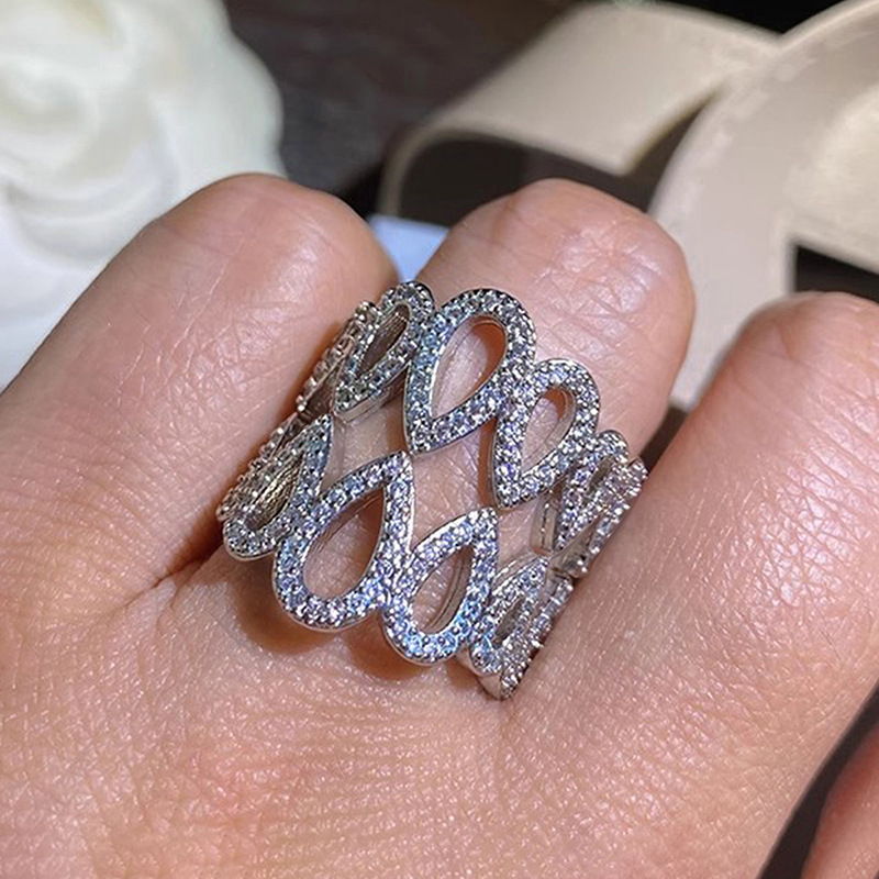 Metal micro-inlaid water drop ring opening adjustable hollow shining single ring fashionable light luxury women's jewelry