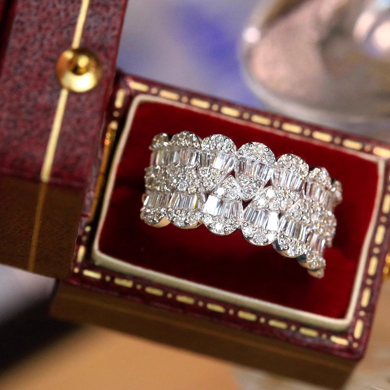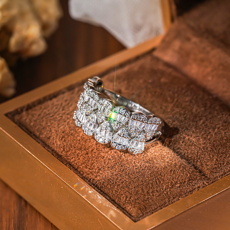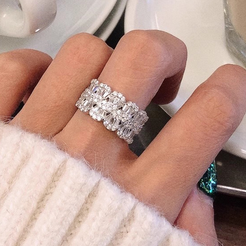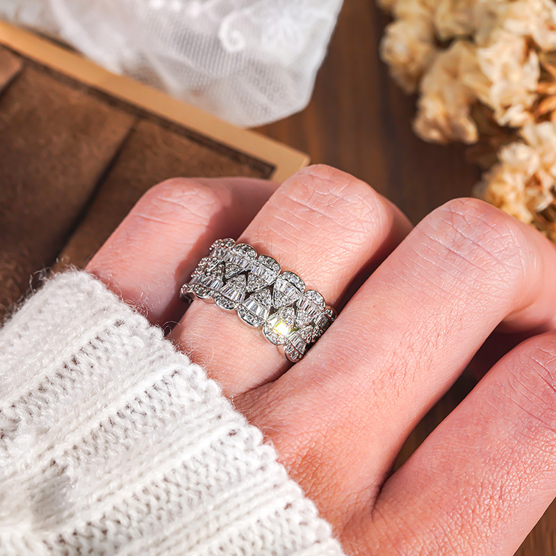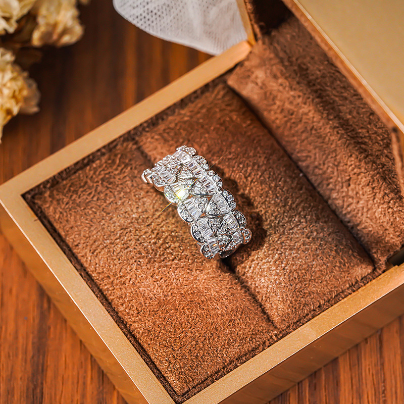 Micro-inlaid celebrity style classic all-match popular ring six-claw zircon wedding ring European and American style light luxury ring