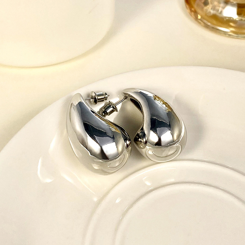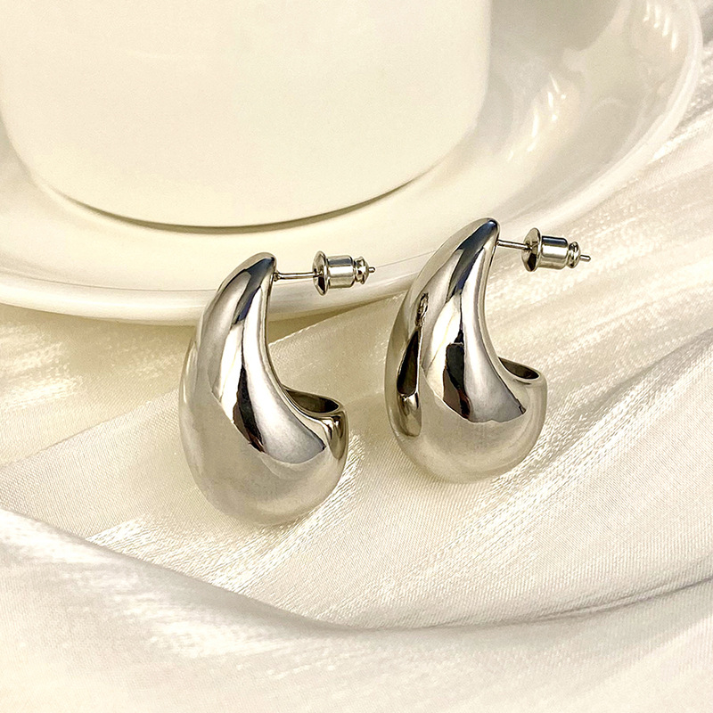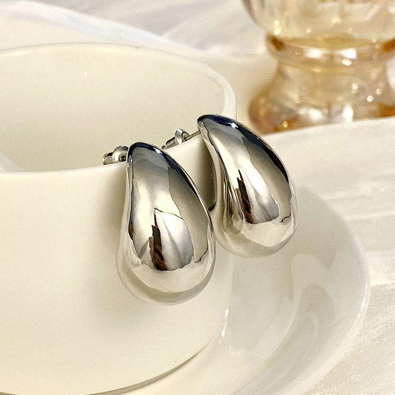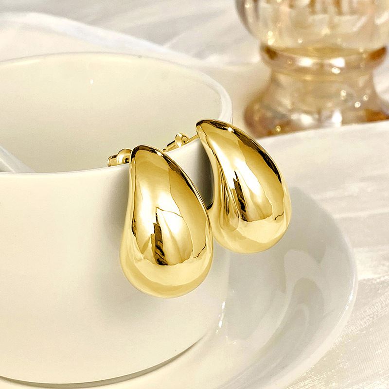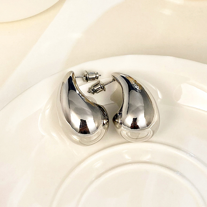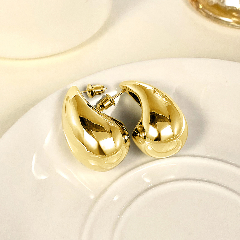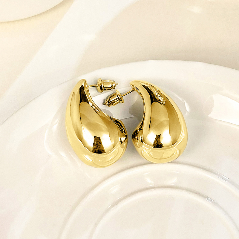 Metallic hot-selling earrings, fashionable ladies' large teardrop polished earrings, simple and hot-selling earrings