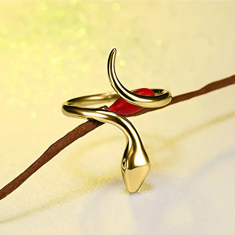 Metallic snake-shaped ring European and American simple animal open ring personality design small snake ring
