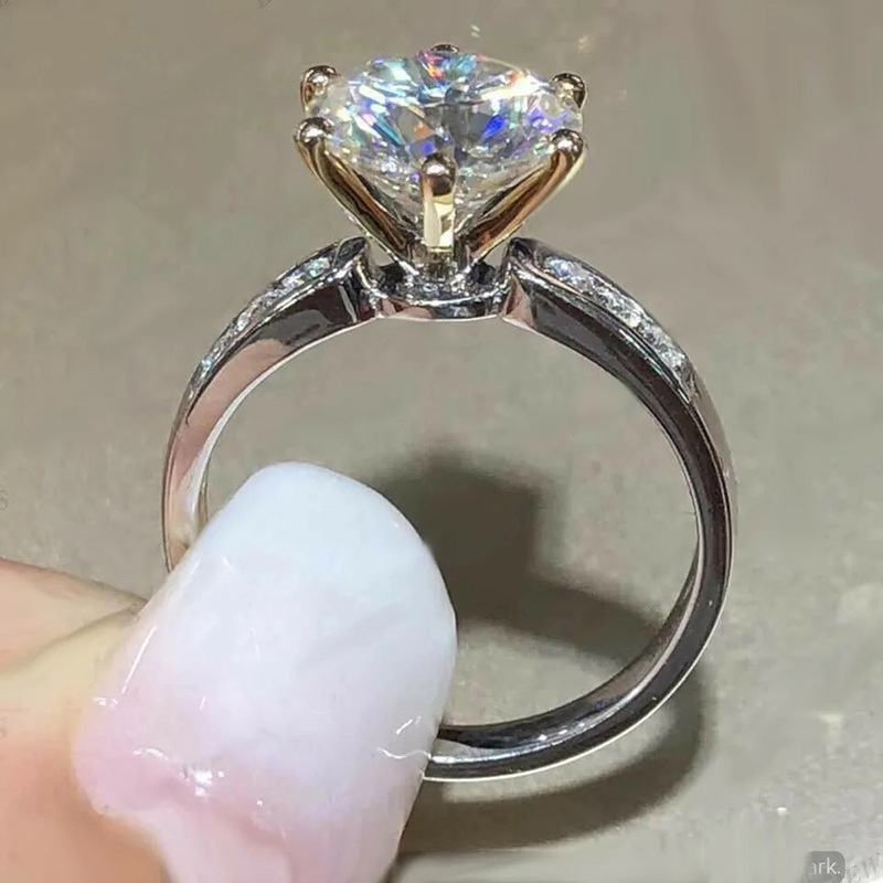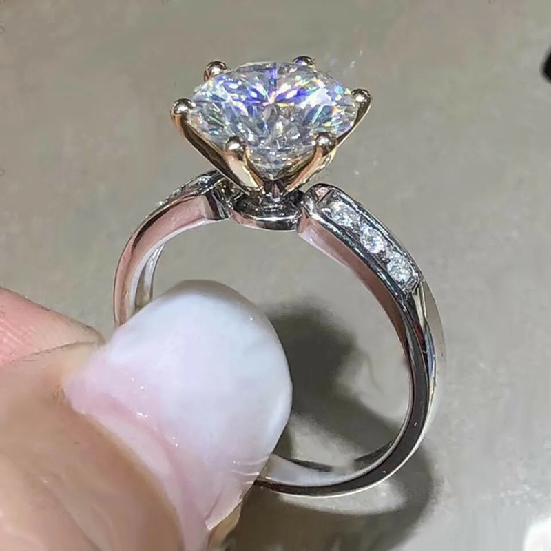 Micro-inlaid couple wedding proposal wedding ring European and American style royal classic imitation diamond ring fashionable six-claw ring
