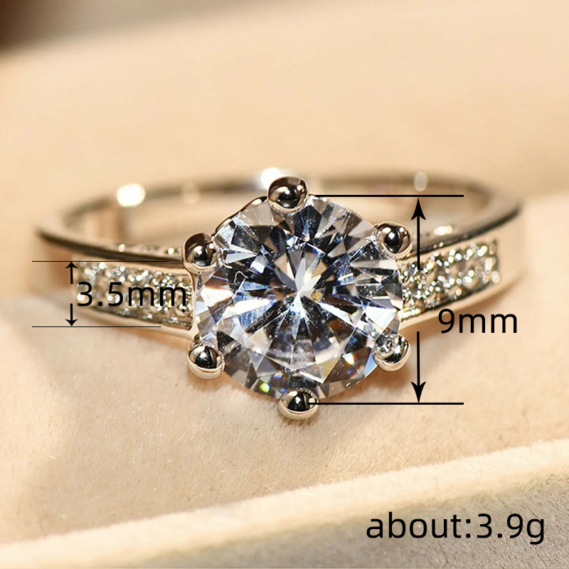 Micro-inlaid celebrity style classic all-match popular ring six-claw zircon wedding ring European and American style light luxury ring