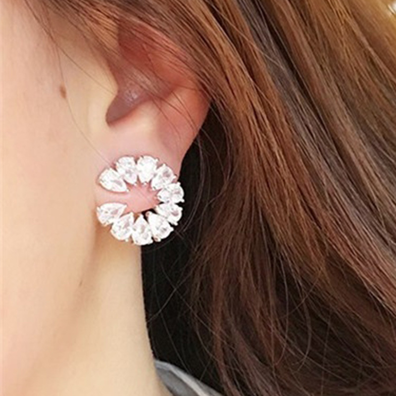 Micro-inlaid sparkling zircon women's earrings simple Korean personality temperament earrings versatile earrings