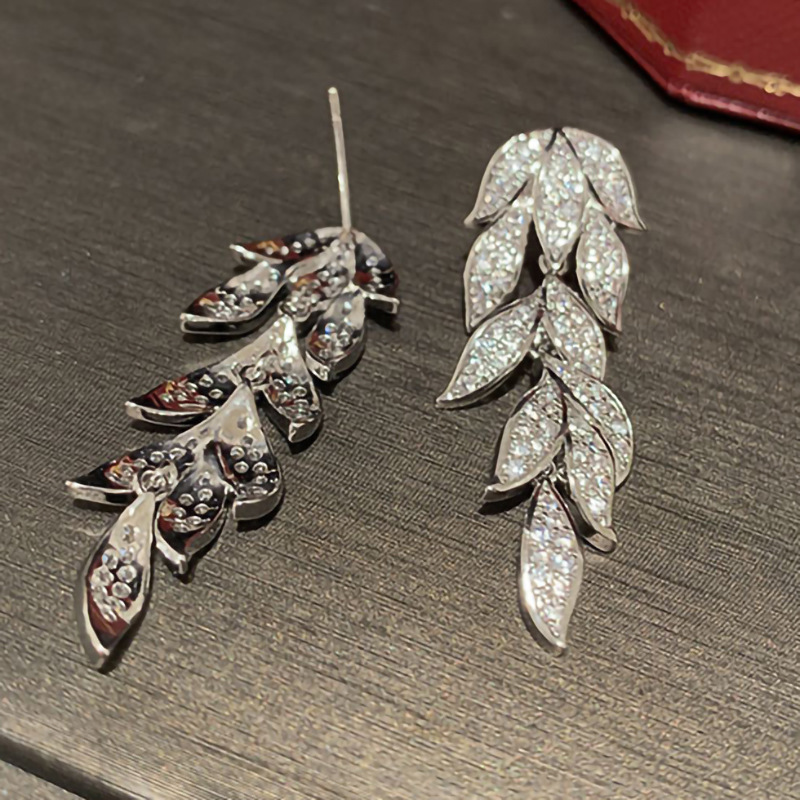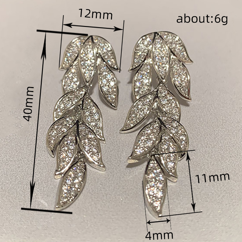 Micro-inlaid zircon shiny leaf earrings for women, exquisite temperament plant long earrings, popular in Europe and America
