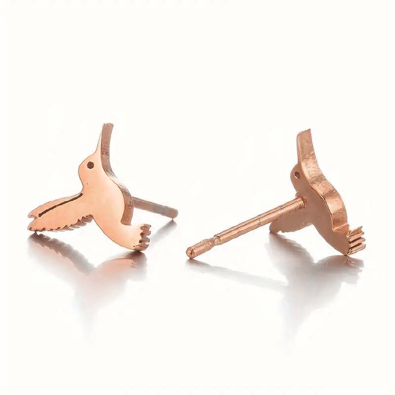 Mini simple animal earrings, metallic small bird earrings, fashionable and high-end hummingbird female earrings