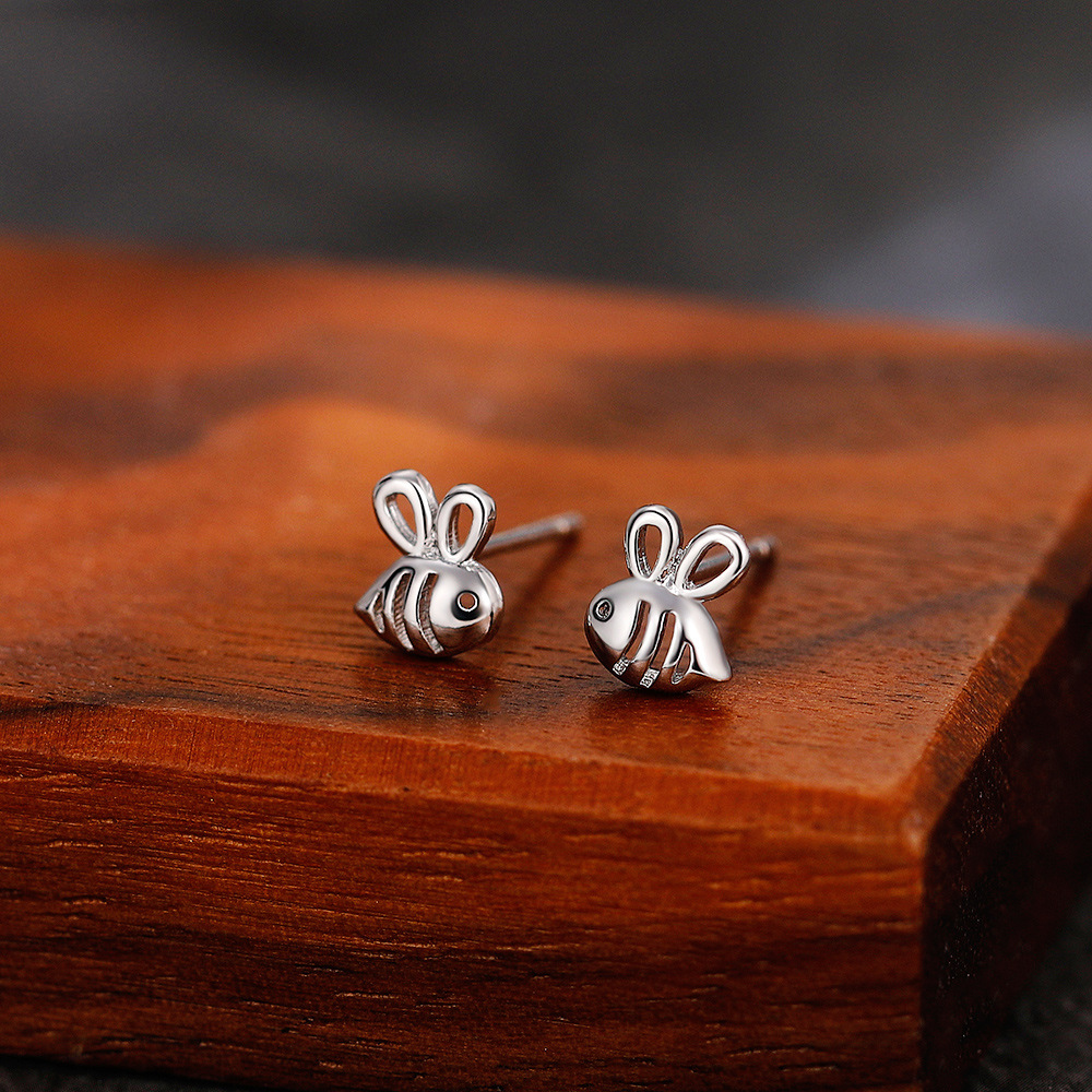 Minimalist cute bee earrings for girls, forest-style hollow smooth animal earrings, mini student earrings