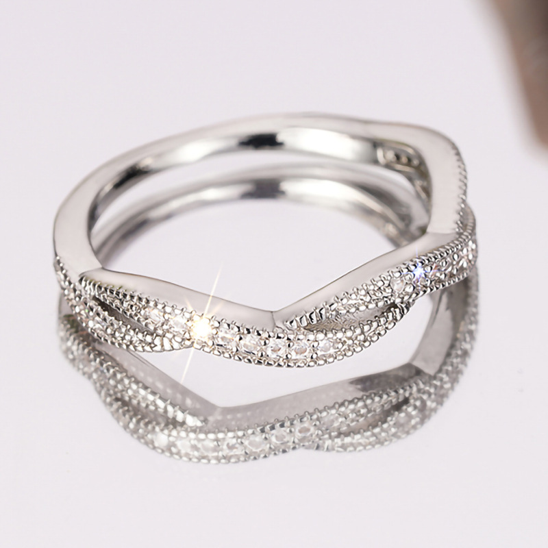 Classic four-claw imitation zircon micro-inlaid ring women's double row two-color twist arm ring engagement wedding ring women