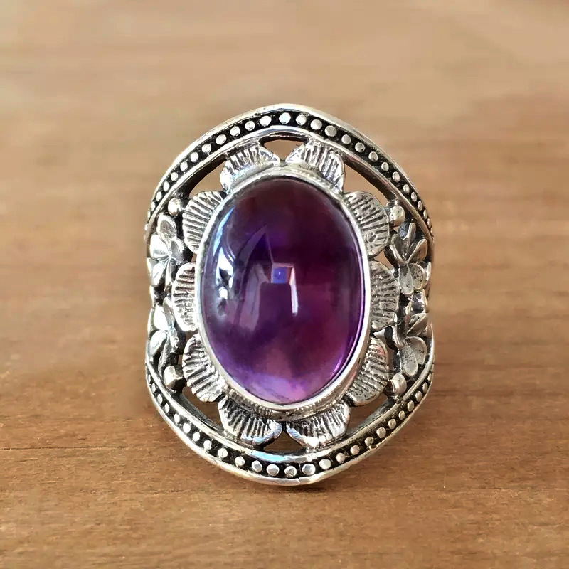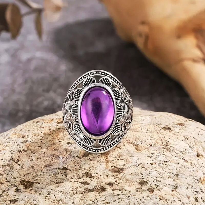 Classic retro engraved auspicious flower ring classical wide version Miao ring Yunnan ethnic style men and women's jewelry