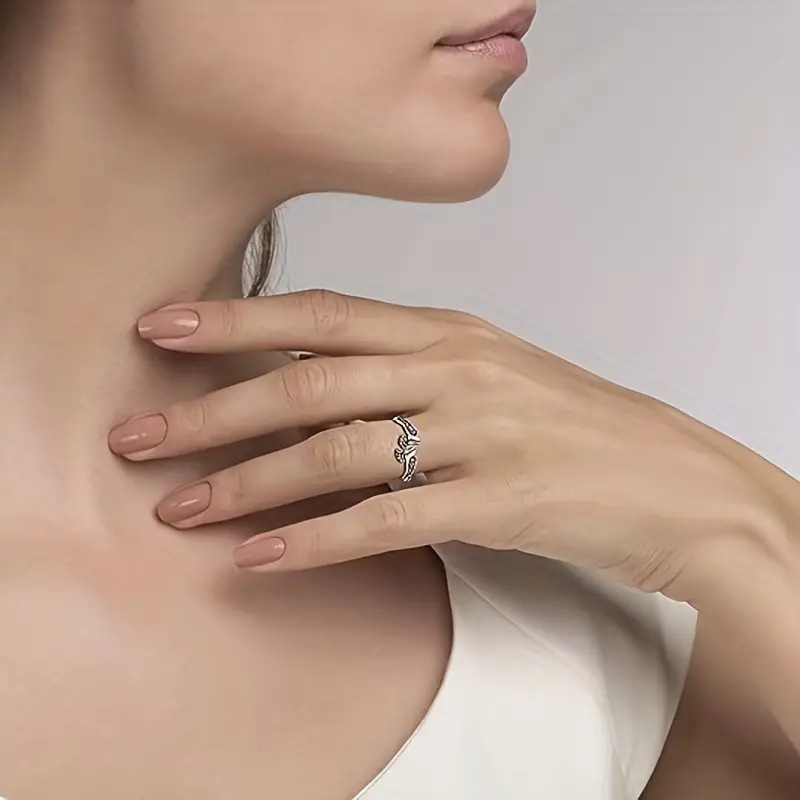 Mother Angel Ring Women's Sweet Warm Elegant Engraved Ring Baby Footprint Fashion Jewelry