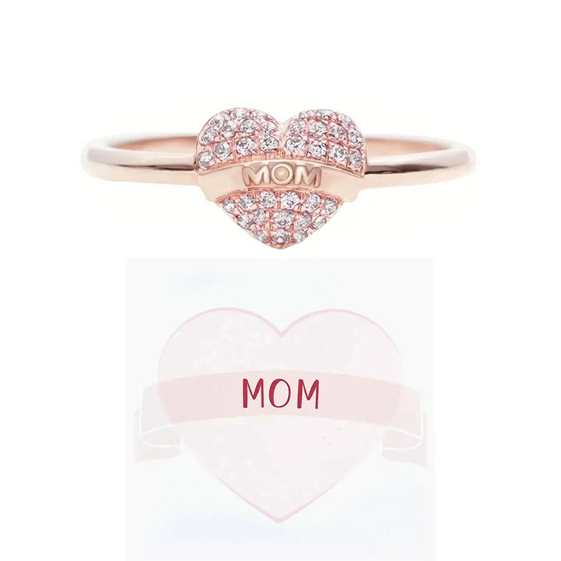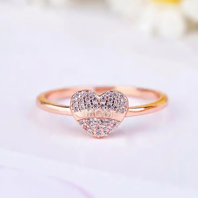 Mother's love heart ring for women, exquisitely inlaid with zircon design, fashionable, sweet and elegant jewelry