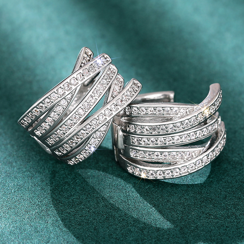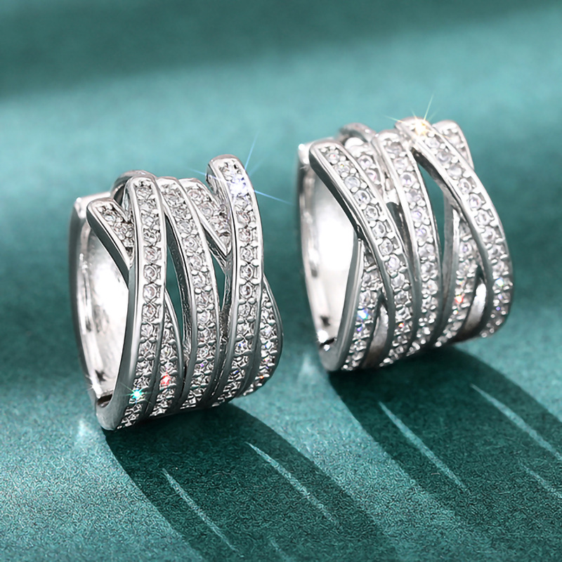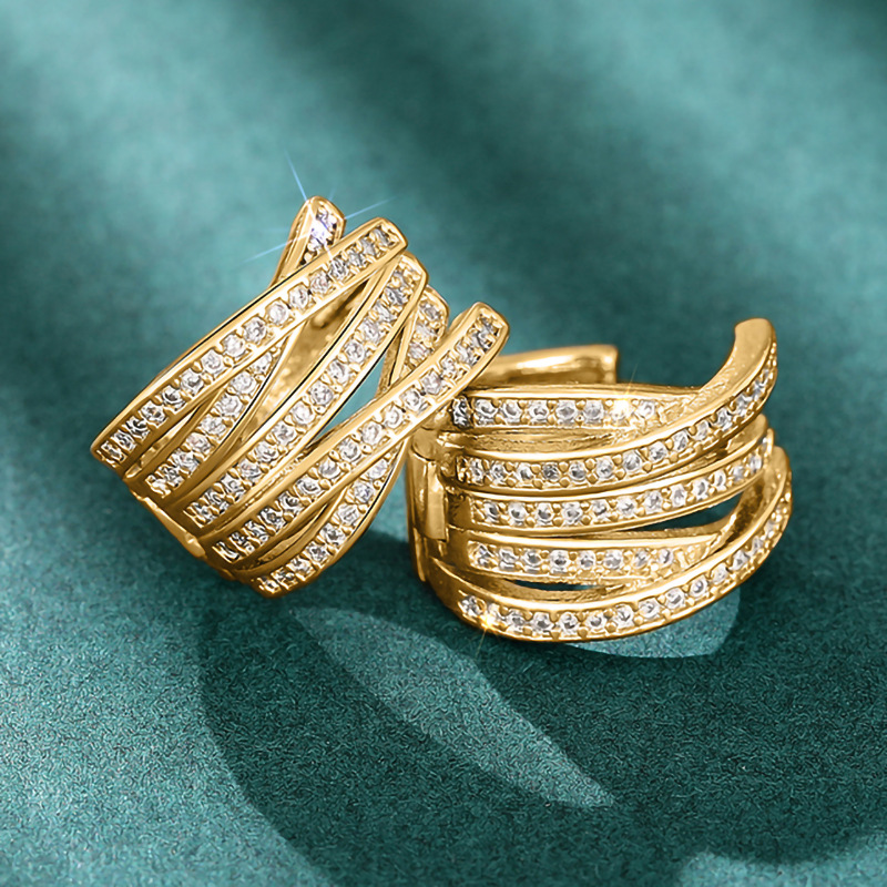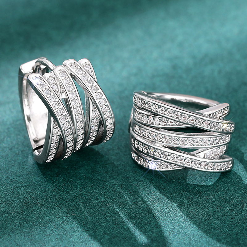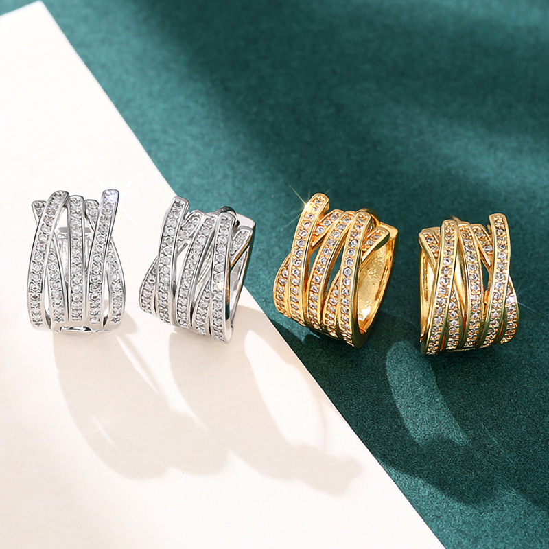 Multi-layer cross earrings with multiple rings and diamonds, elegant earrings for banquets, high-end fashion earrings