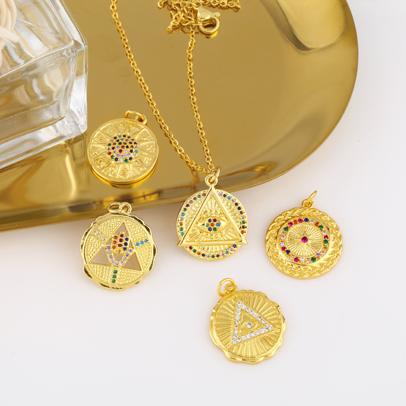 necklace European and American fashion micro-inlaid colored zircon necklace simple palm eye pendant necklace female nkt86