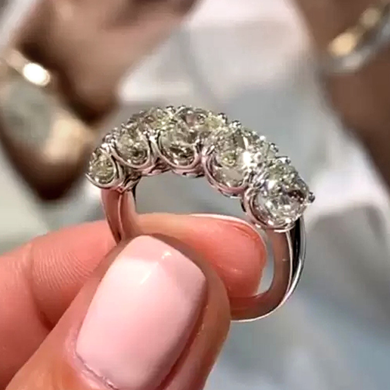 Micro-inlaid celebrity style classic all-match popular ring six-claw zircon wedding ring European and American style light luxury ring