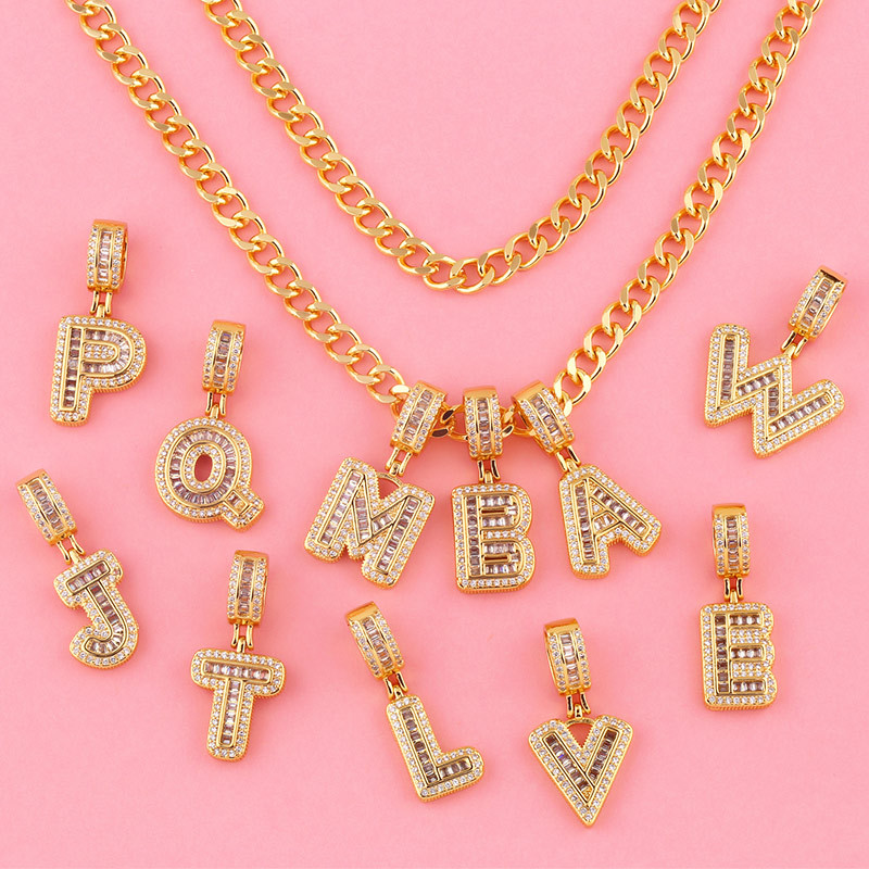 Hot selling zircon English letter necklace European and American fashion hip hop men and women 26 letter necklace nkb174